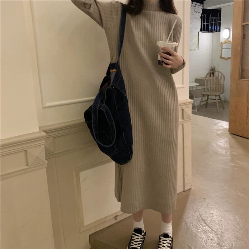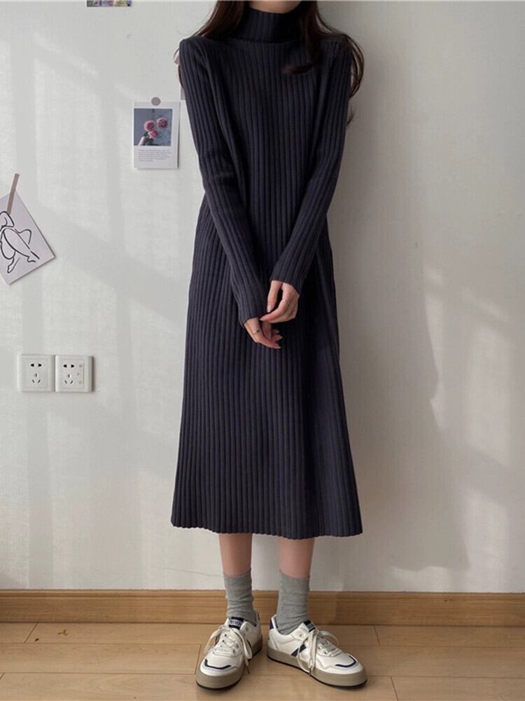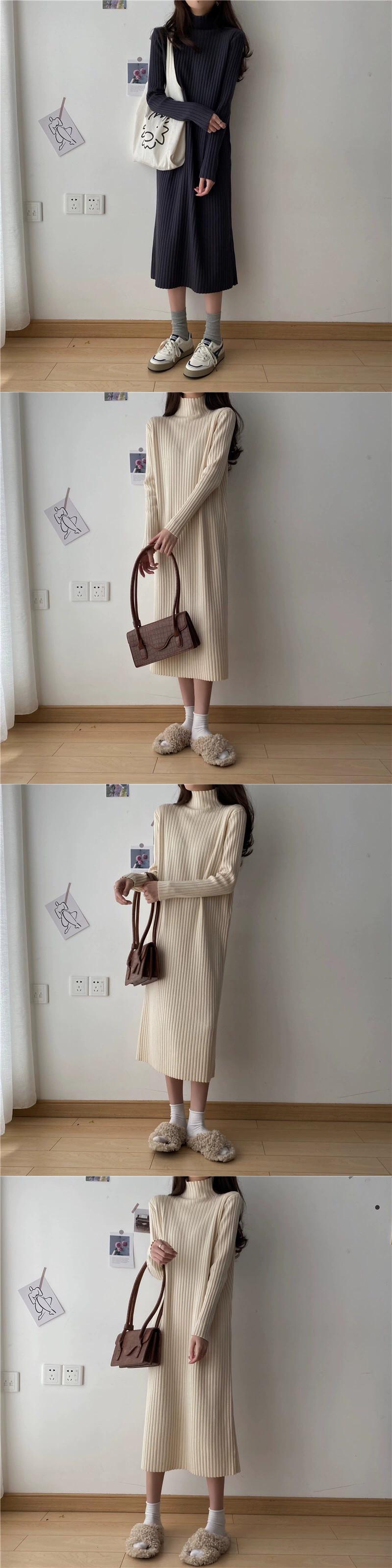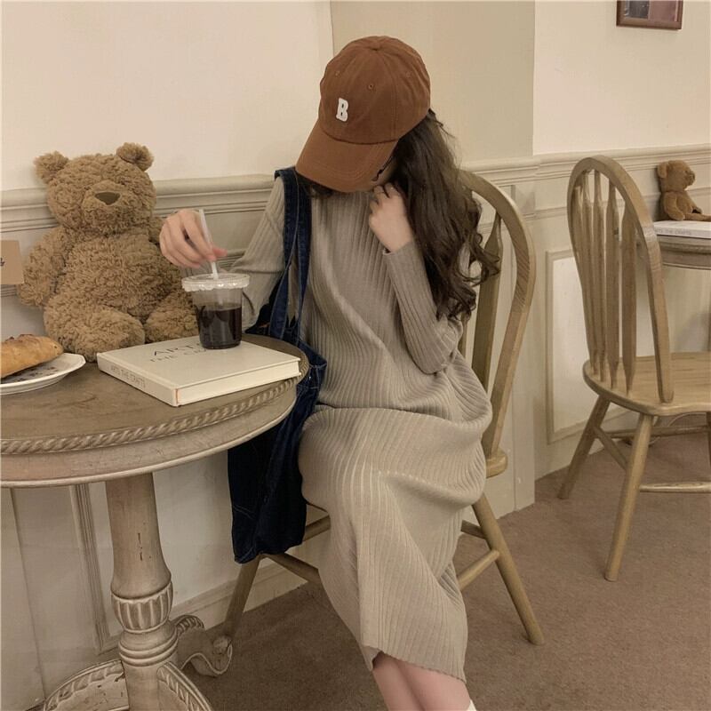 ミッドレングス肥厚セータースカート女性秋 2023 新しいピットストライプルーズ腹カバーカジュアル長袖ドレス ロング オータム 秋物 missk41184455339