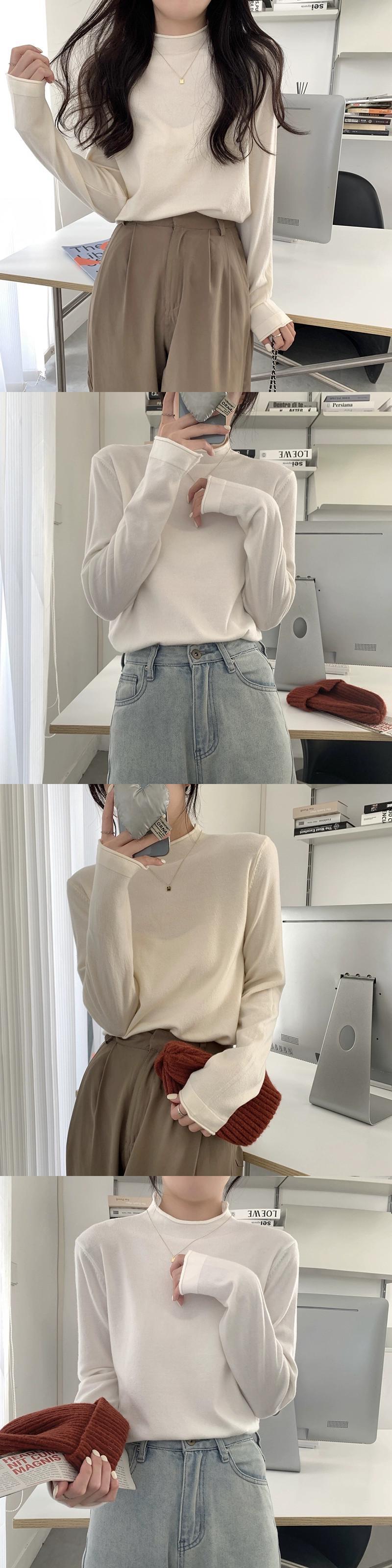 ハーフタートルネックロールエッジ黒底シャツ女性秋 2023 新しい多用途長袖インナーセーター春と秋のトップ ロング ブラック スプリング 春物 オータム 秋物 missk82640561316