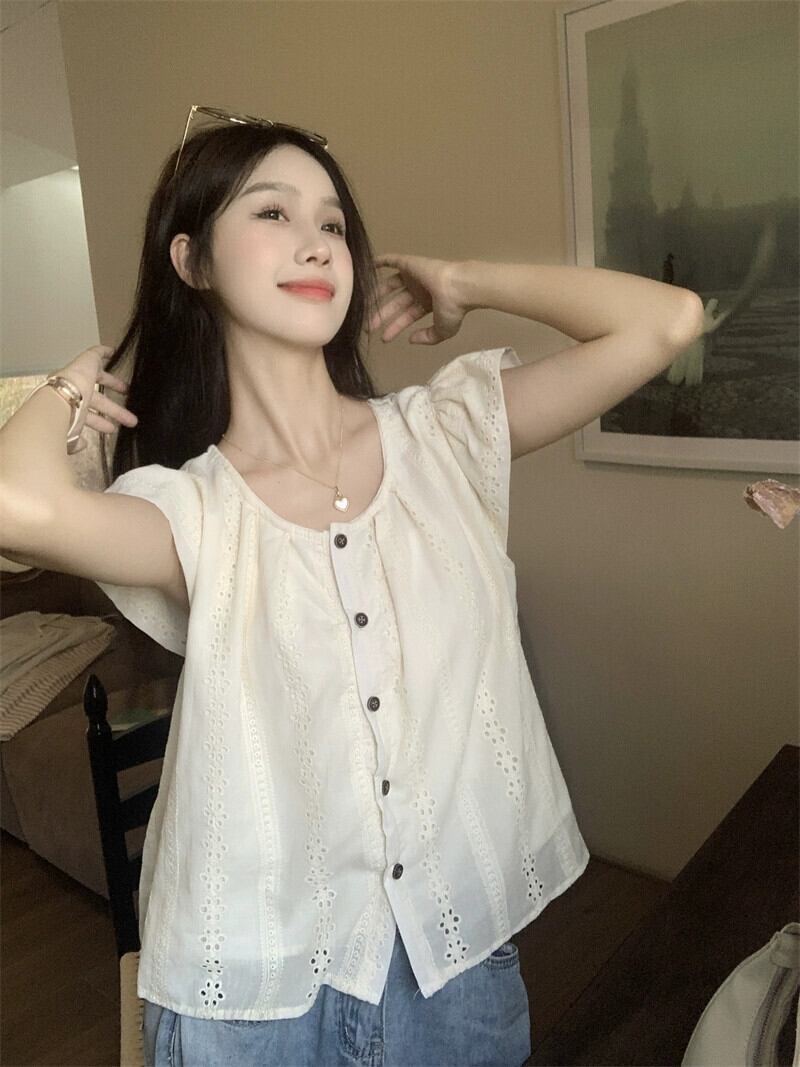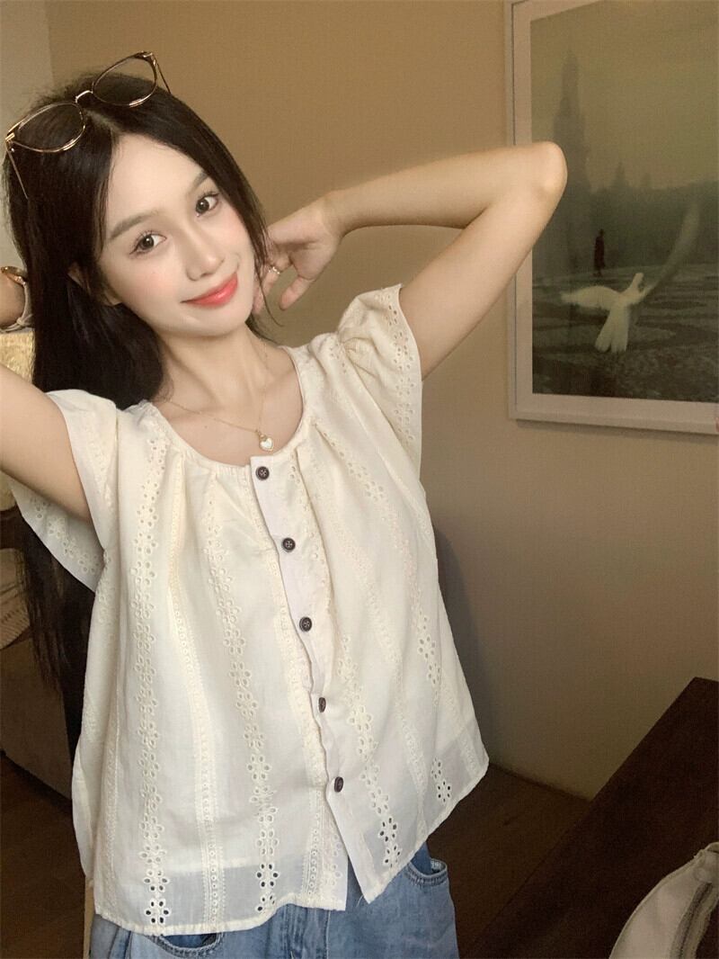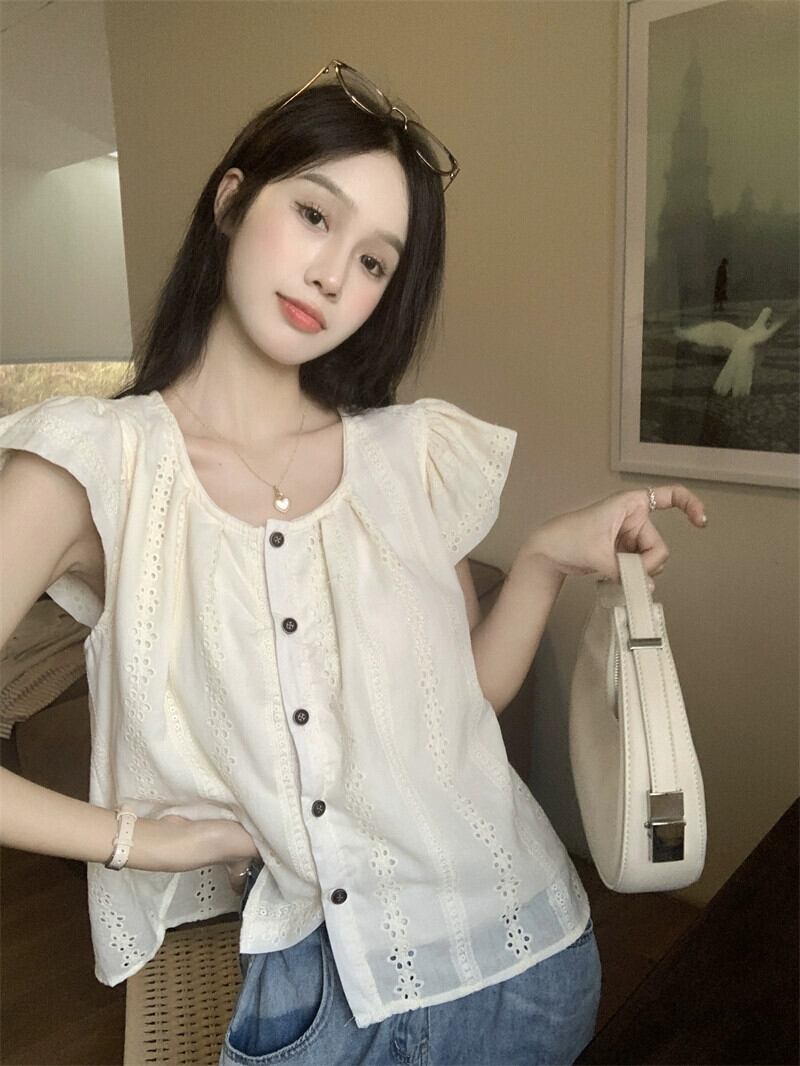 小さなフライングスリーブシャツ女性の夏の 2023 新しいフレンチレトロデザイン中空アウターウェア eign シックトップ サマー 夏物 missk60662162242