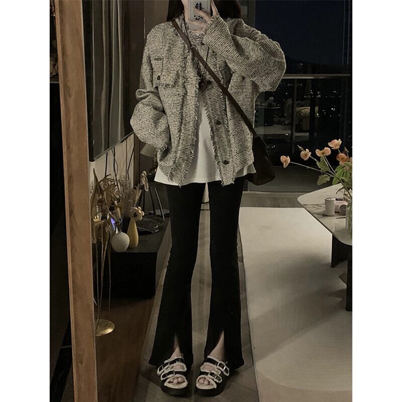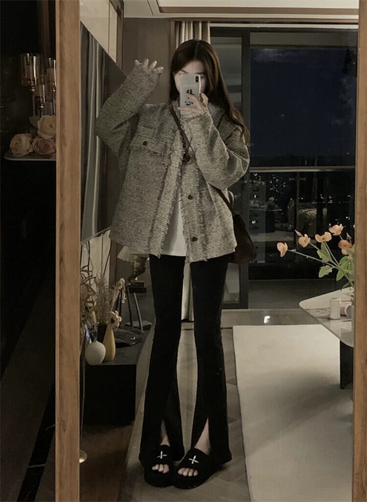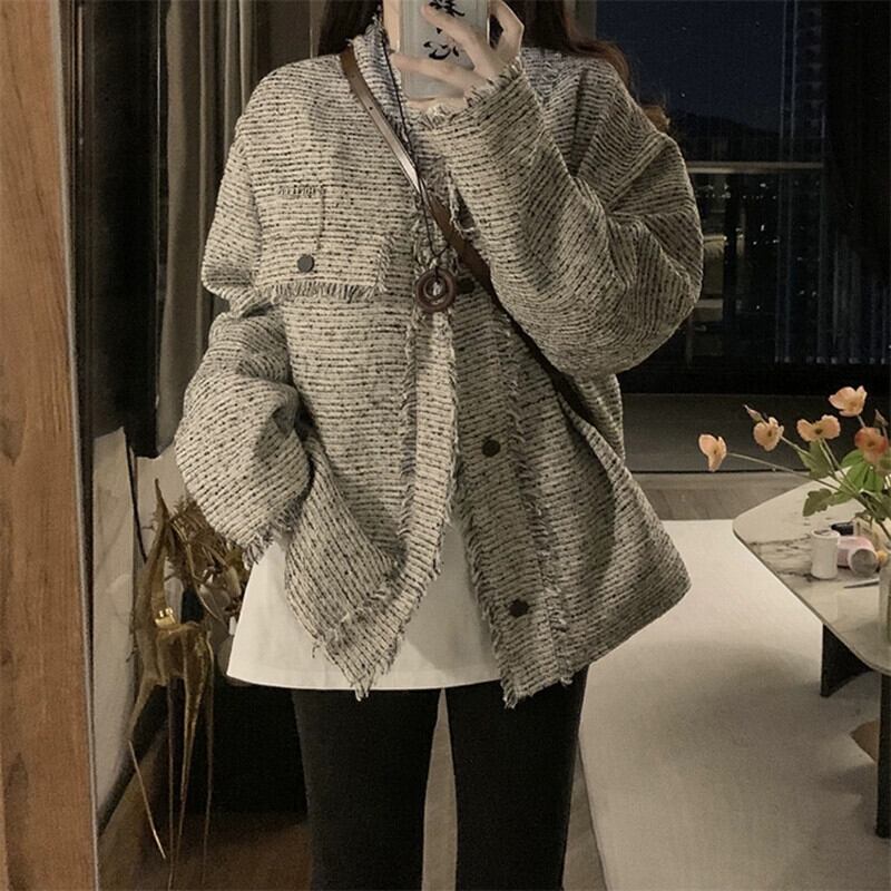 2023 秋冬新スタイル Xiaoxiangfeng 気質ファッショナブルな V ネックミッドレングスシックなテル長袖人気ジャケット女性 ロング オータム 秋物 ウィンター 冬物 Vネック missk38657220268
