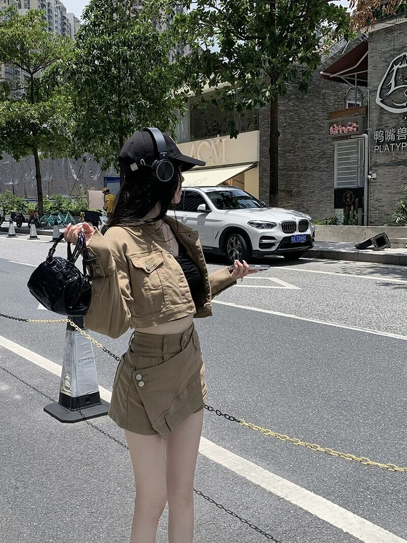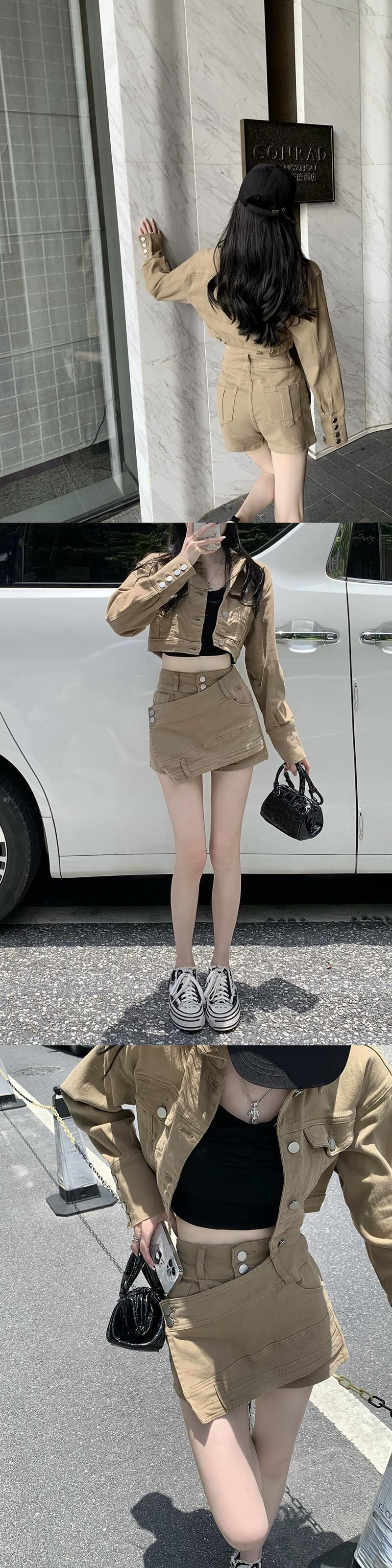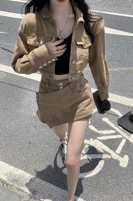 ホットデザインカーキデニムスーツ2023秋の新しいスリムファッション長袖ジャケット女性の2点セット ロング オータム 秋物 missk1919049060