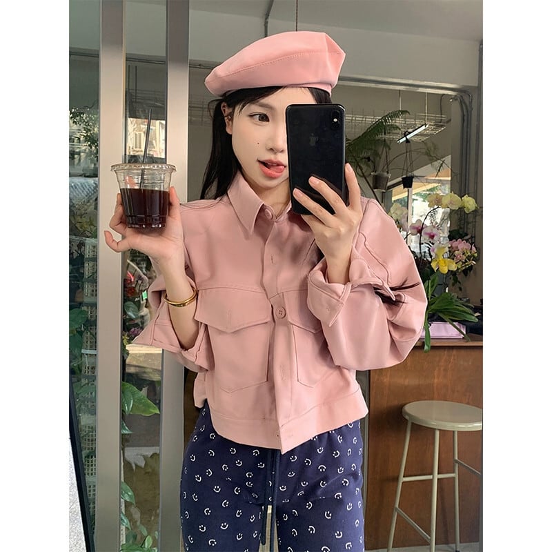 2023 秋のショートワークジャケットの女性の新しいレトロな香港スタイルのポロカラーシックな多目的ルーズ長袖トップ ロング オータム 秋物 missk32803049368