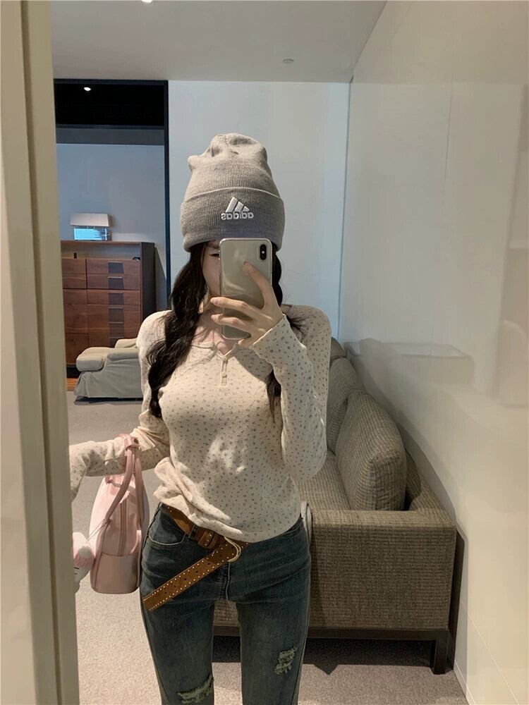 2023 秋の新スタイル優しいスタイルのデザインニッチ多用途痩身花柄長袖右肩 Tシャツ女性 ロング オータム 秋物 missk79875300638
