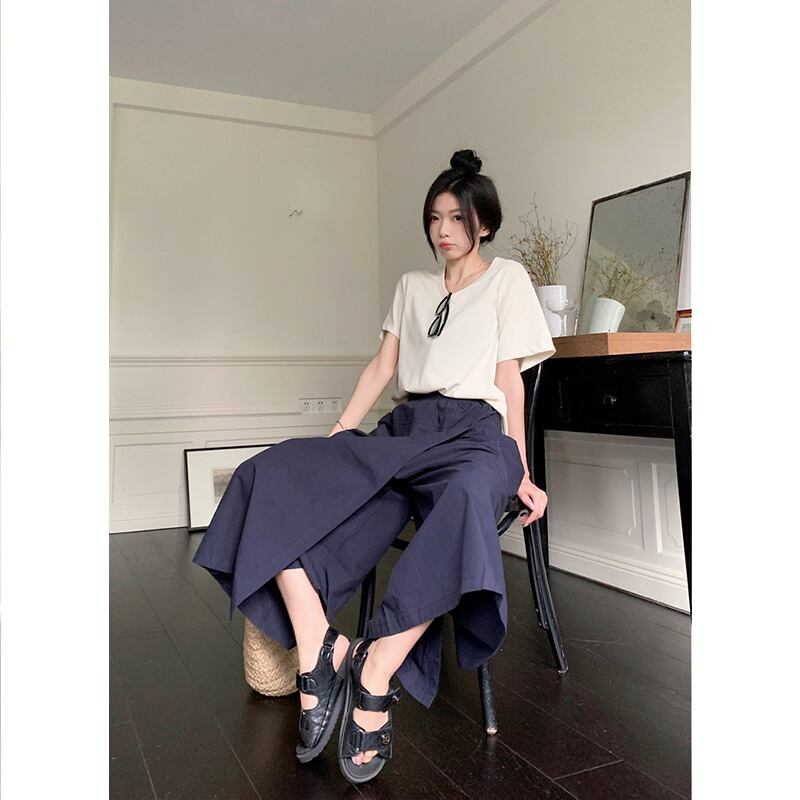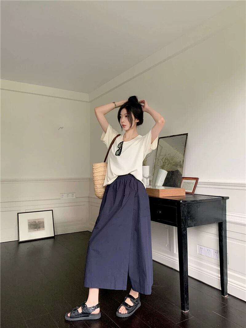 レトロハイウエストスカートレディース 2023 夏の新しいスリムミッドレングス弾性ウエストデザイン A ラインキュロット エラスティック 伸縮 サマー 夏物 Aライン missk15287068599