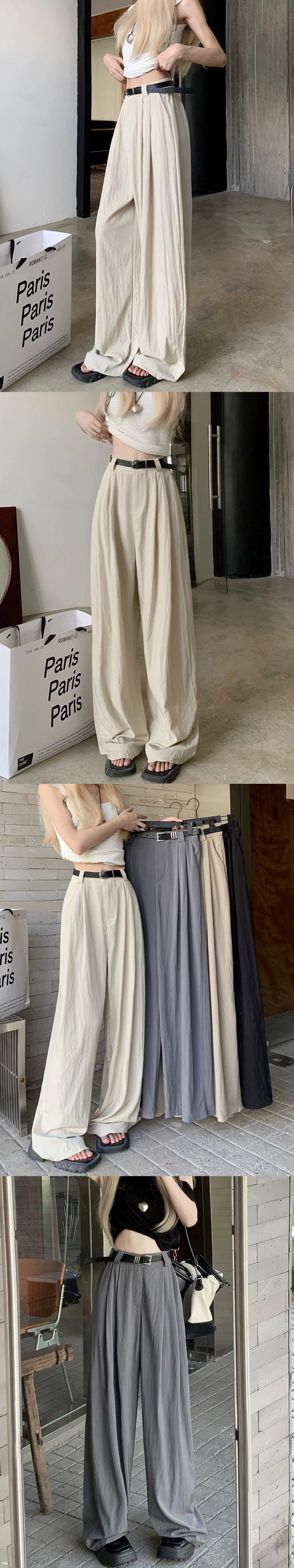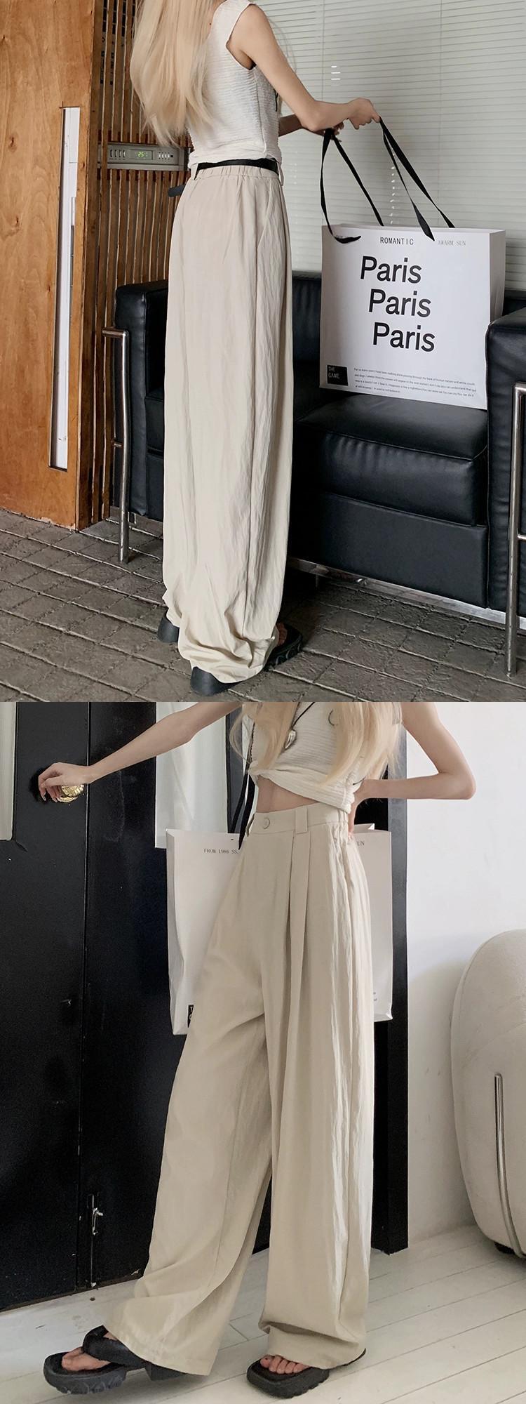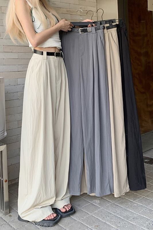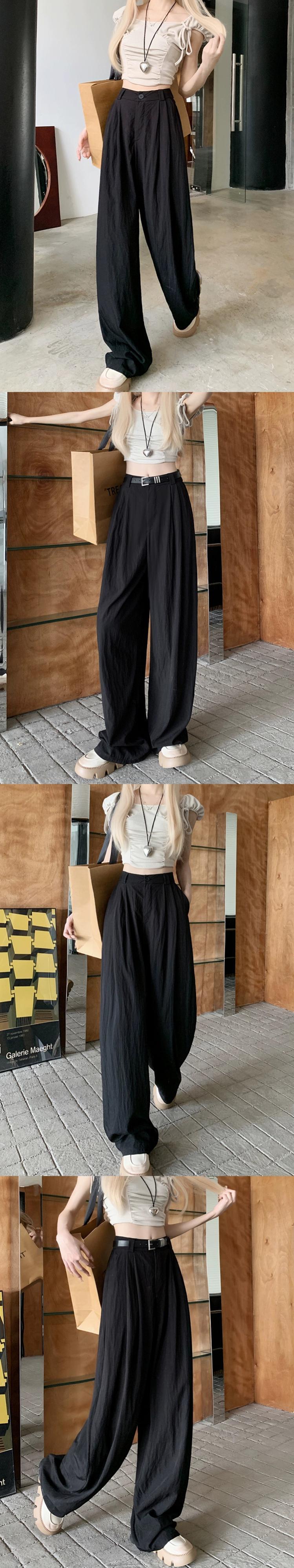 テクスチャード薄手カジュアルパンツ女性夏バージョン 2023 新しいハイウエスト痩身ソリッドカラーワイドレッグフロアレングスパンツ レッド サマー 夏物 missk26942682845