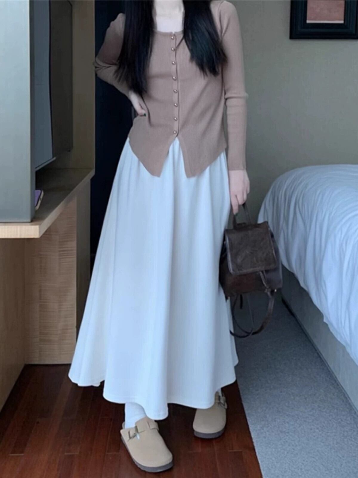 シックなハイウエストワイドスカートレディース2023秋新作スタイル万能ファッショナブルなデザインAラインミモレ丈スカート ハイウェスト オータム 秋物 missk54898509279