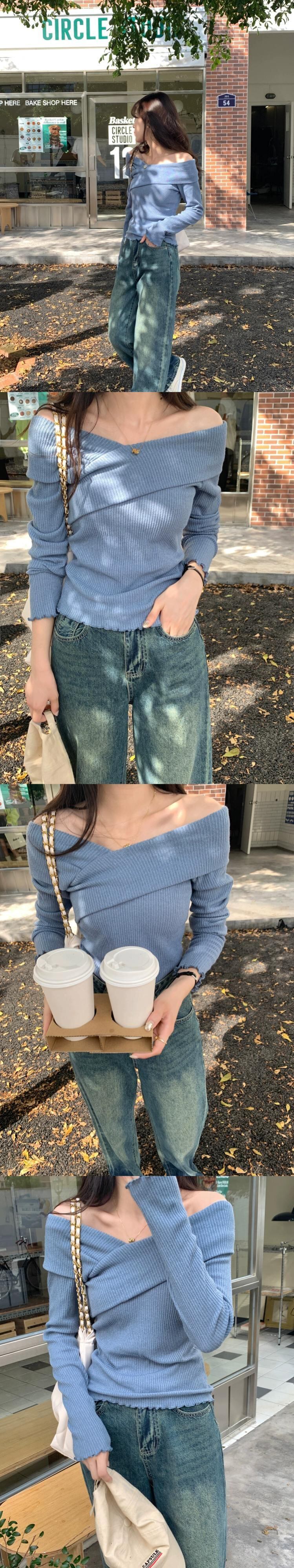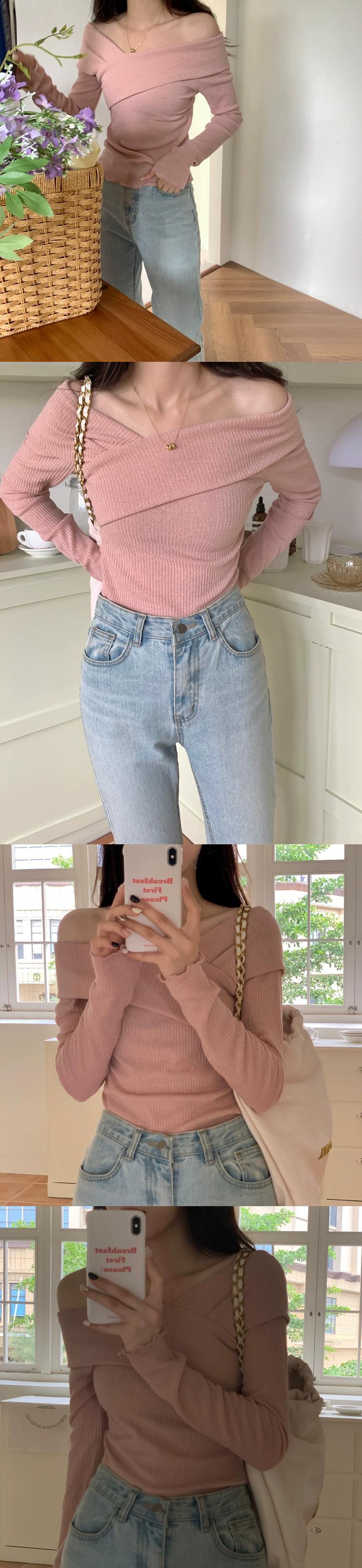 ワンショルダー純粋な欲望長袖セーター女性秋 2023 新しいスリムフィットデザインニッチボトリングトップ ロング オータム 秋物 ピュア missk49186459286
