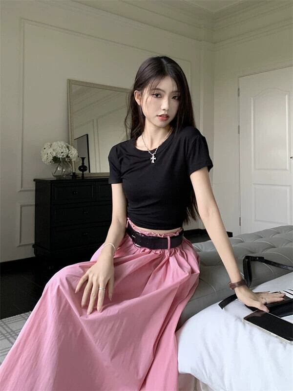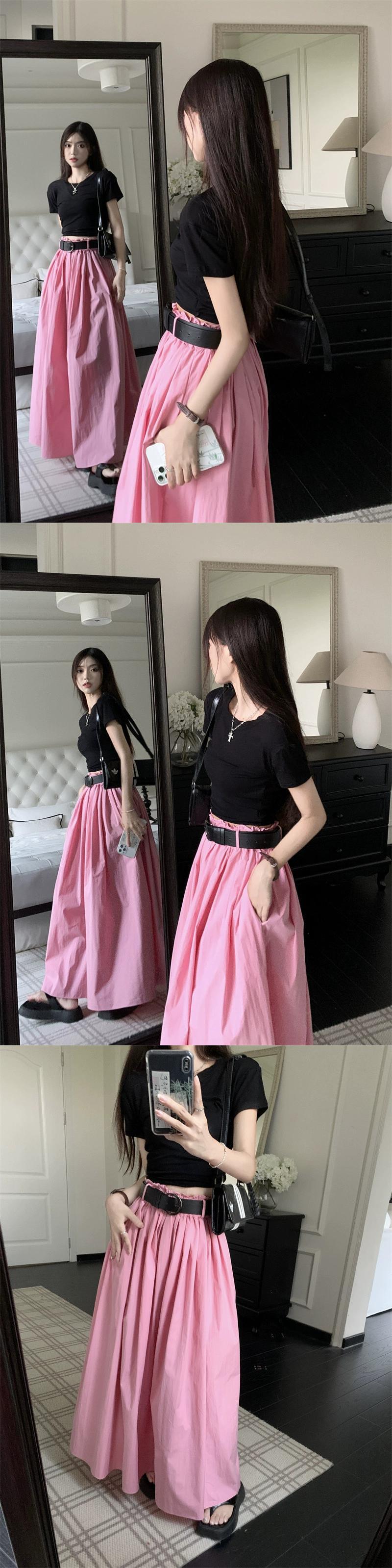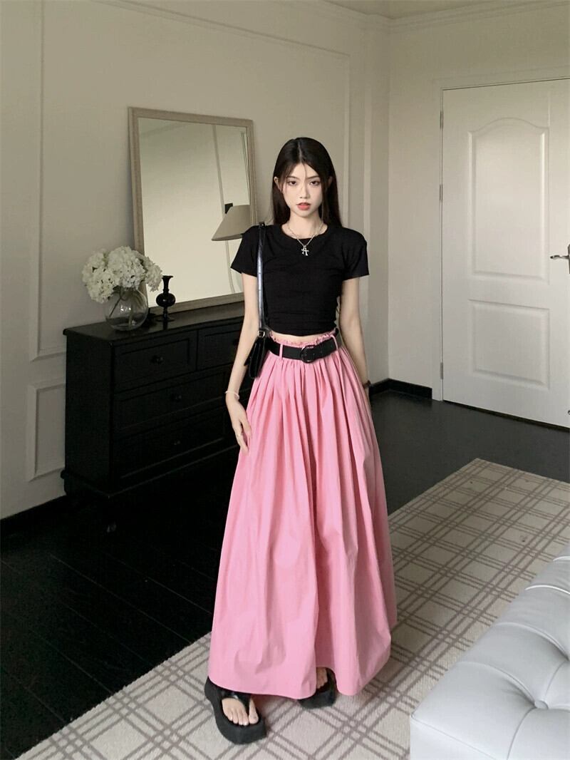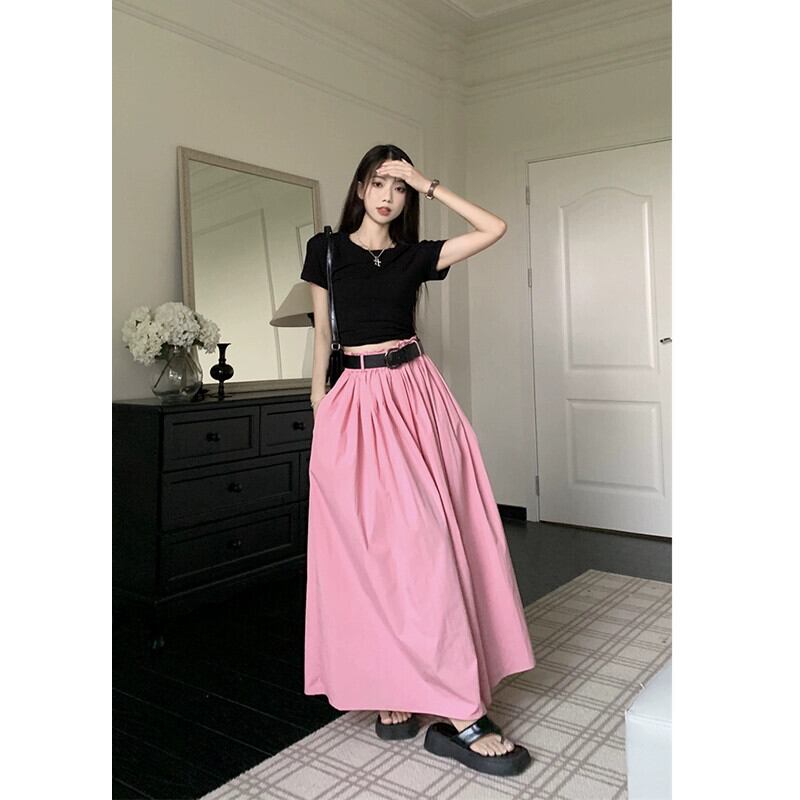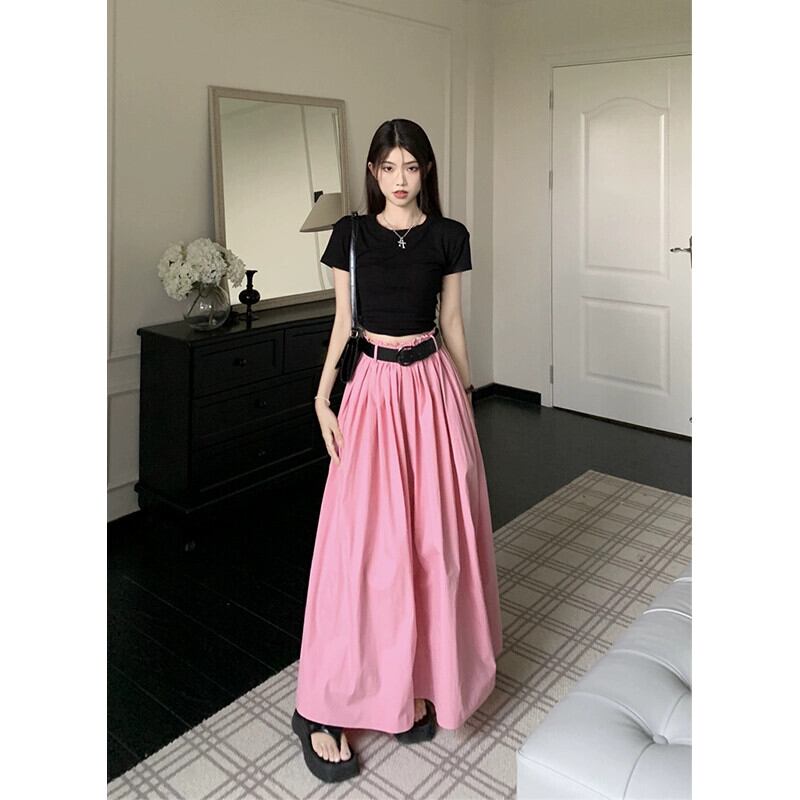 -ウエストピンクスカート夏2023新しい気質デザインニッチプリーツひらひらミッドレングススカートトレンディな女性 サマー 夏物 missk3176146703