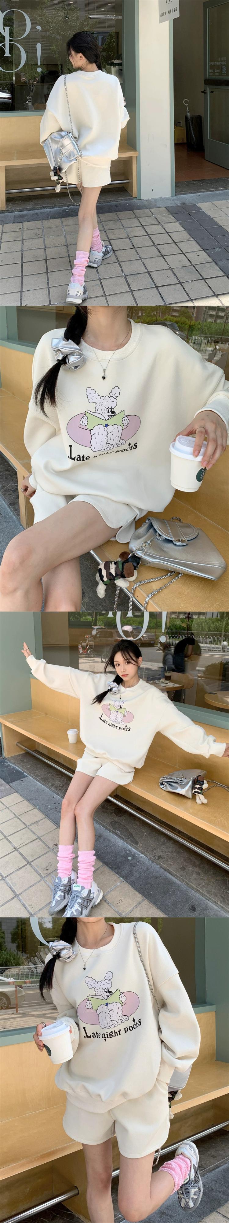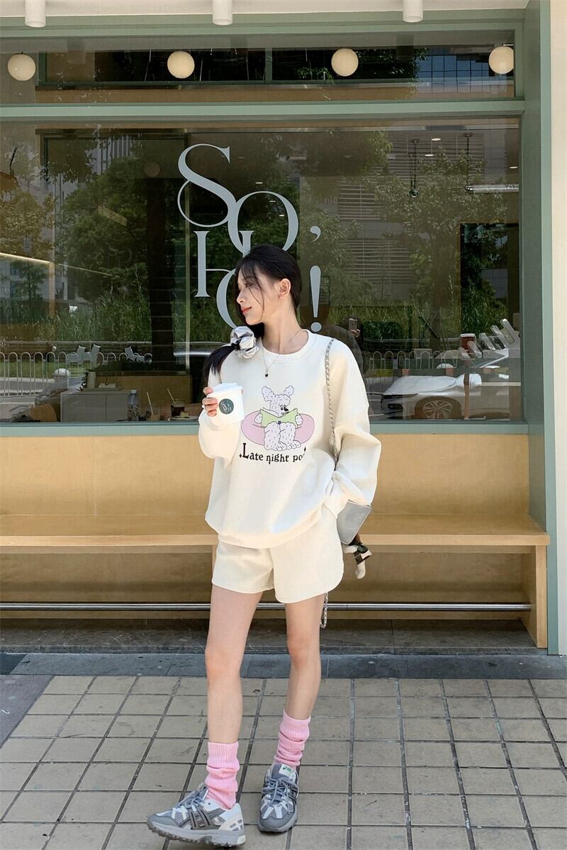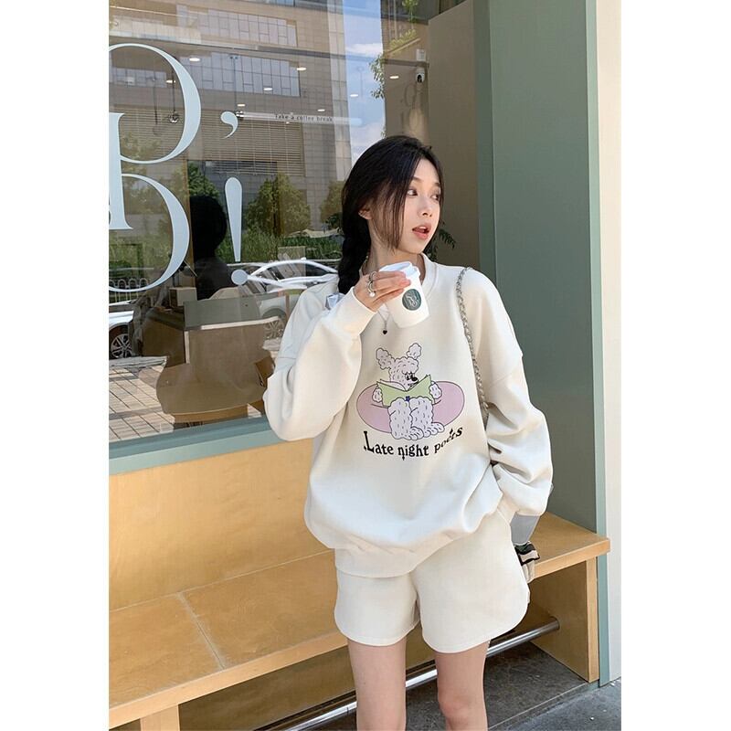 色:アプリコットセーター,グレーのセーター,アプリコットショーツ,グレーのショートパンツ