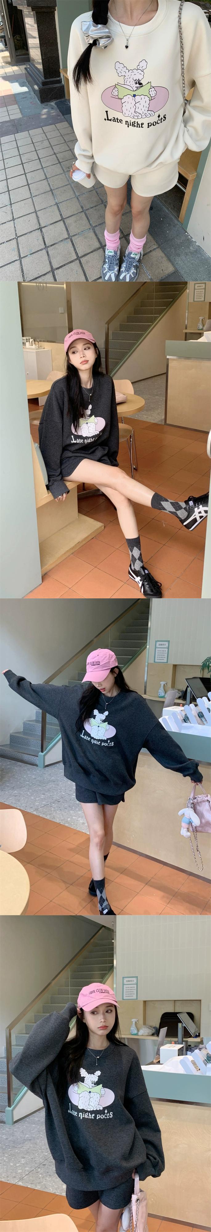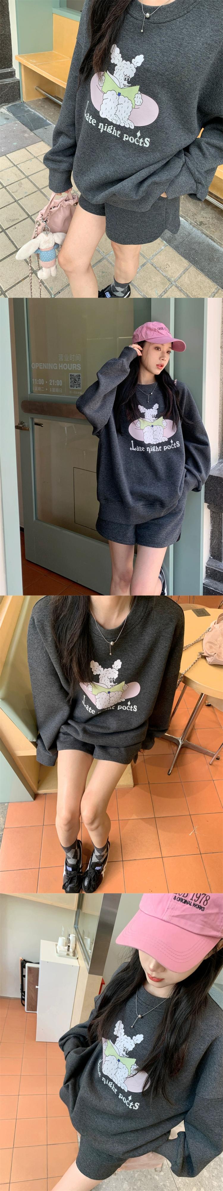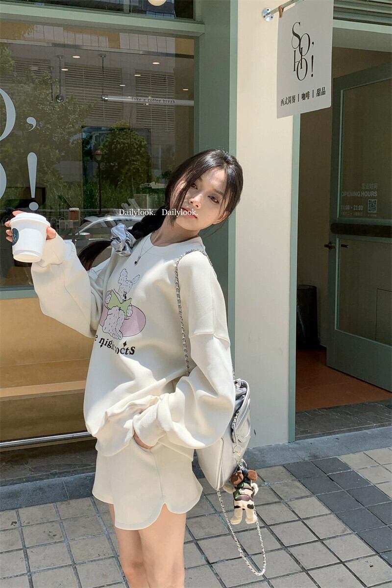 甘くて甘いスウェットシャツの女性の2023秋の新しいフード付きラウンドネック漫画プリントルーズミッドレングス長袖トップ ロング 大人ガーリー スウィート キュート カジュアル オータム 秋物 Oネック missk42445953882