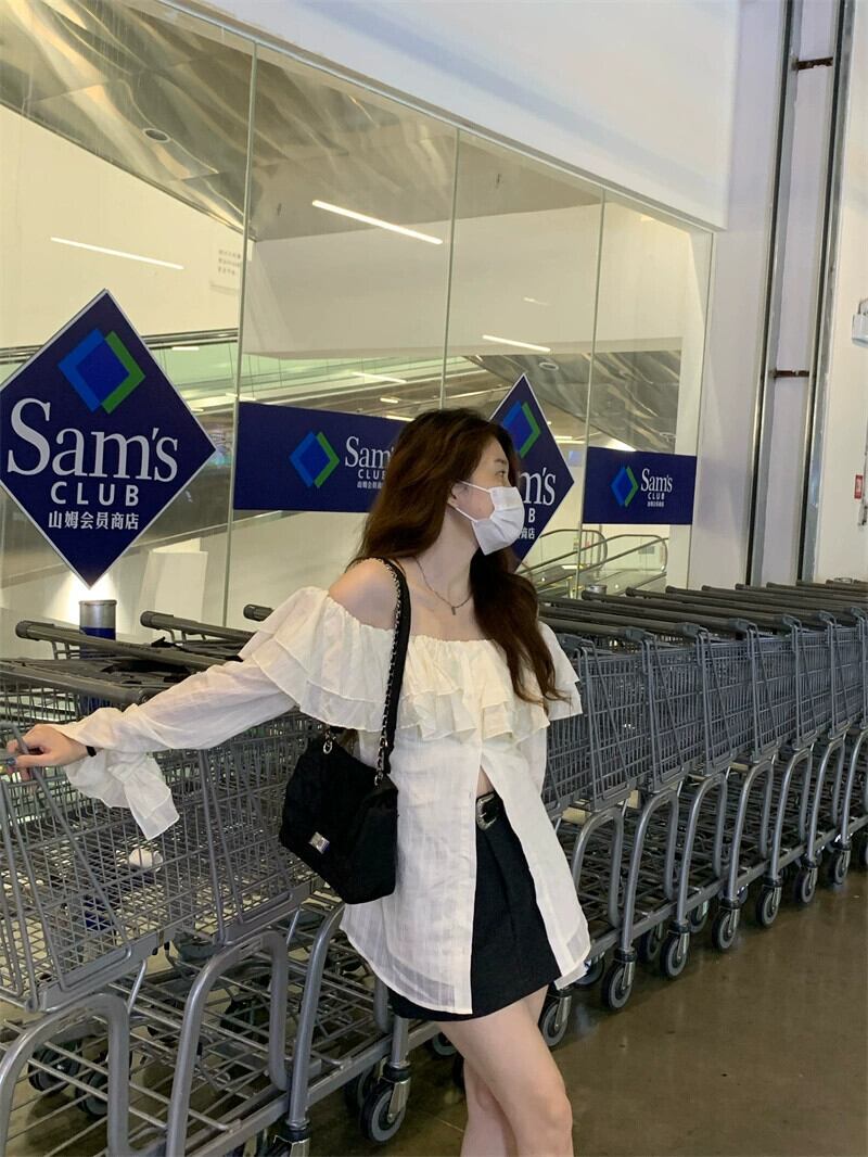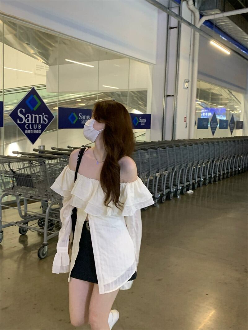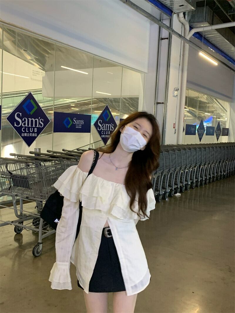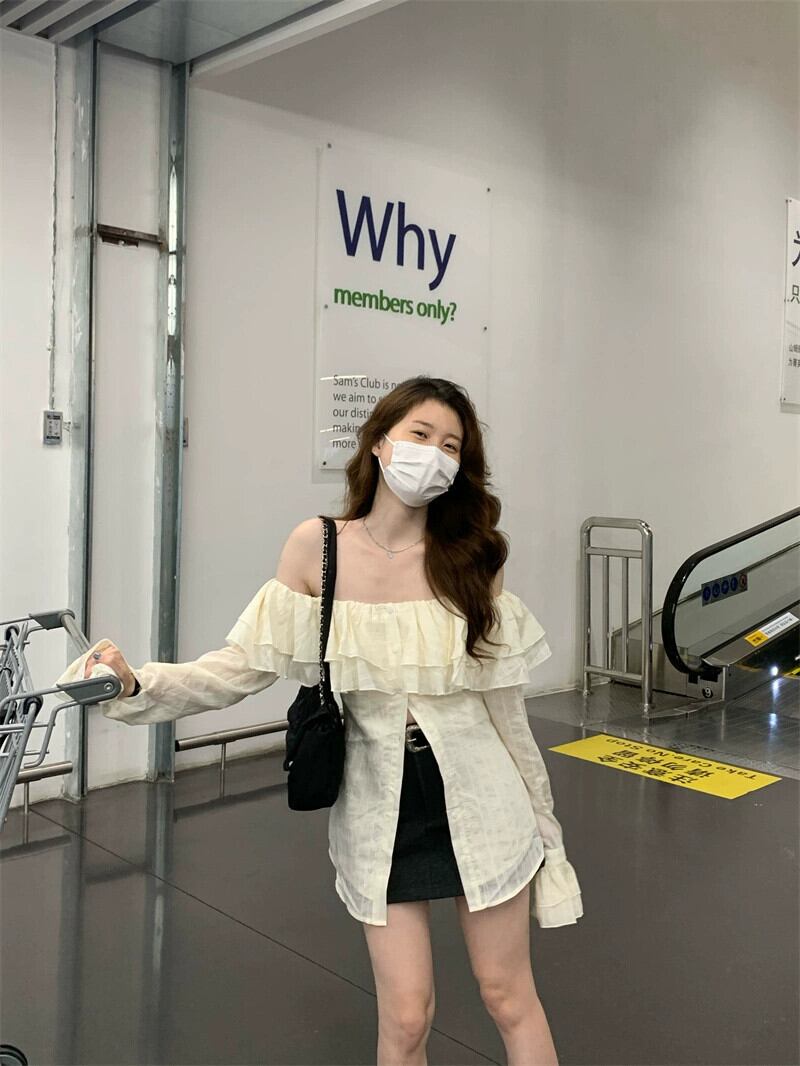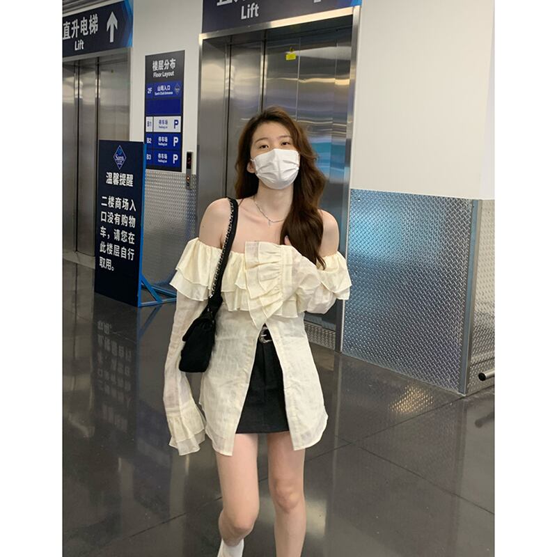 ワンショルダー長袖シャツ女性夏バージョン 2023 新しいフリルデザインウエスト痩身シックなトップ ロング サマー 夏物 missk18054907375