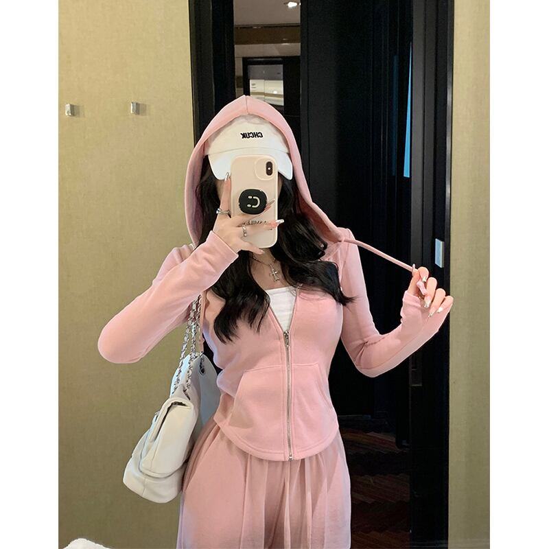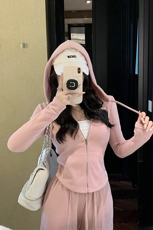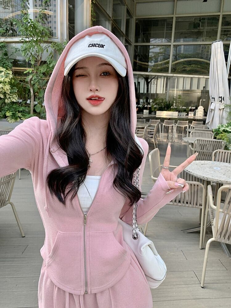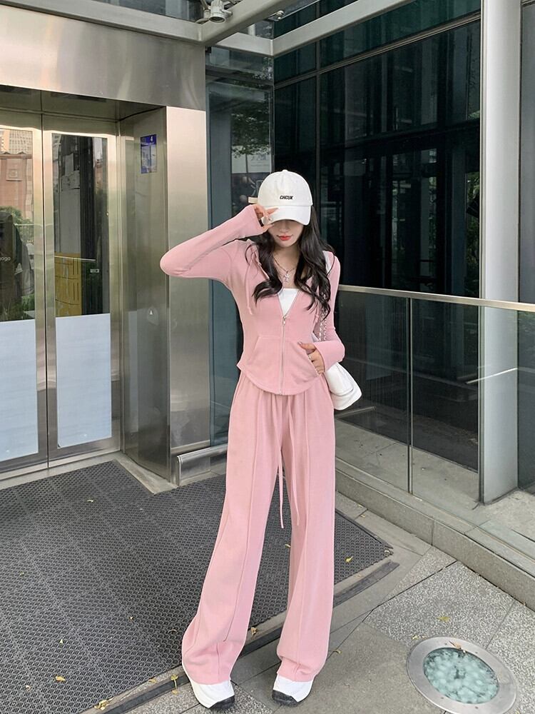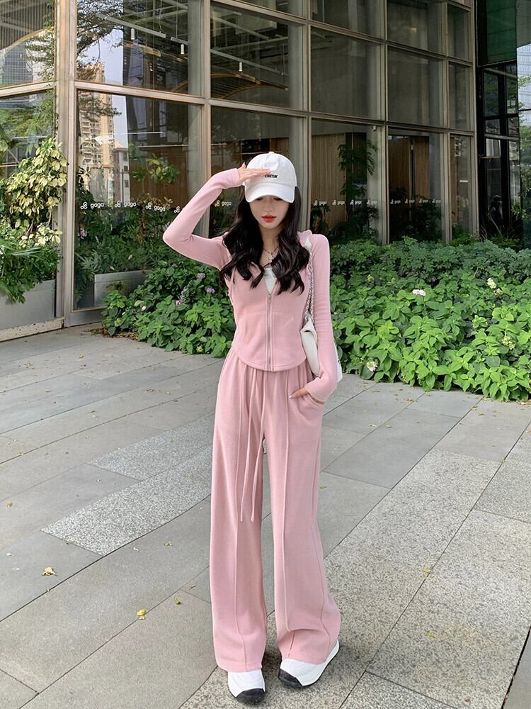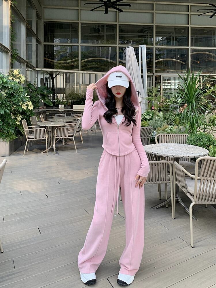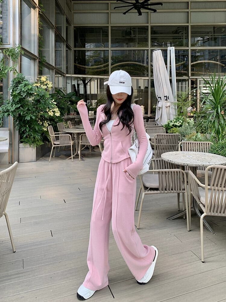 フード付き起毛スリム長袖ニットジャケットスポーツカジュアルパンツ女性秋 2023 新しい 2 点セット ロング オータム 秋物 missk80872103370