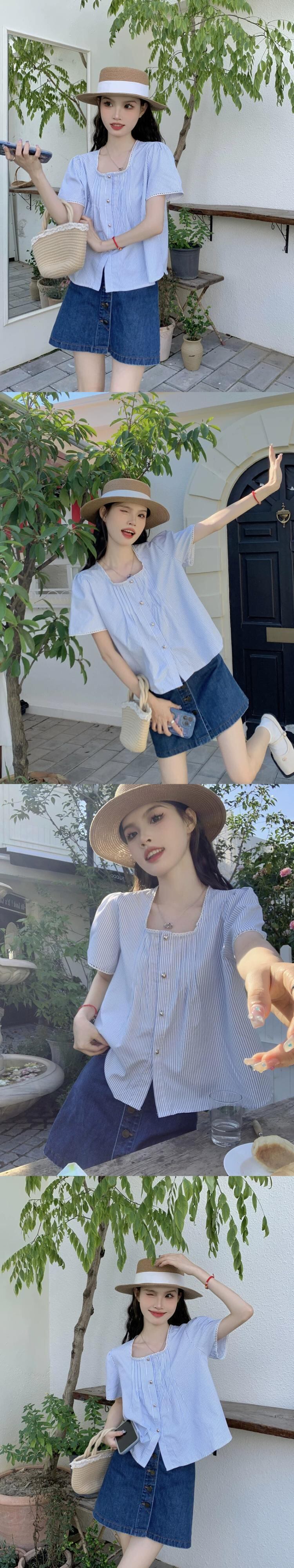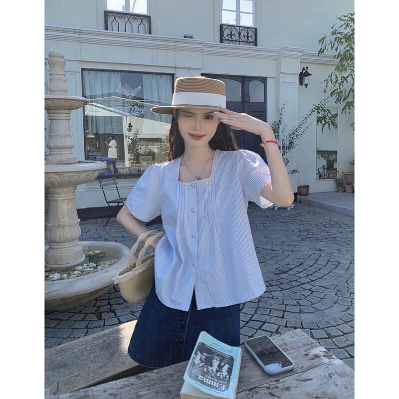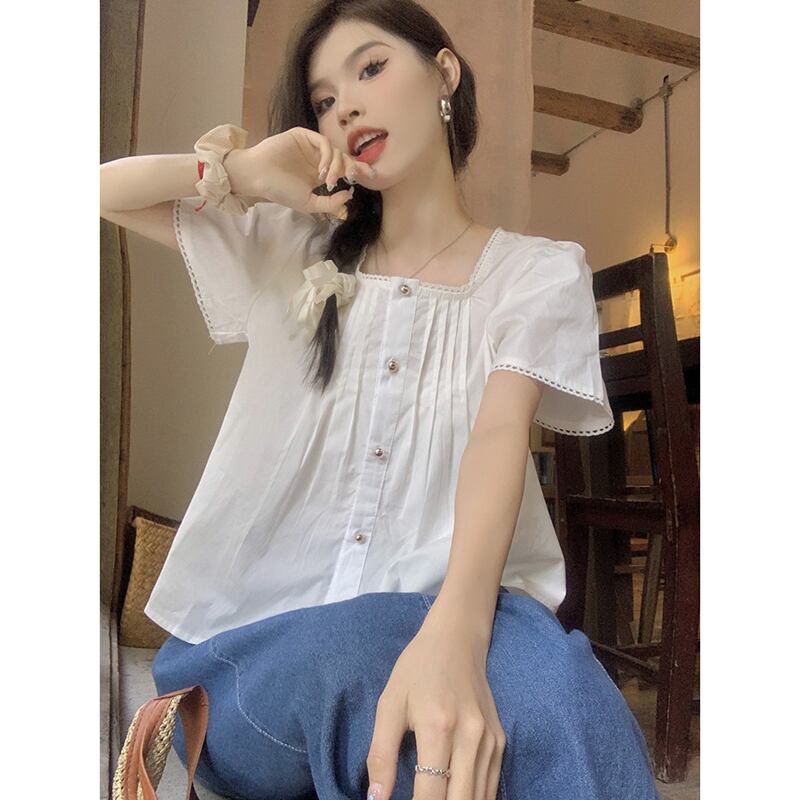 スクエアカラーレース半袖シャツ女性の夏の 2023 新しい甘いフレンチショートルーズデザインホワイトトップ 大人ガーリー スウィート キュート カジュアル サマー 夏物 スクウェア missk34698303426