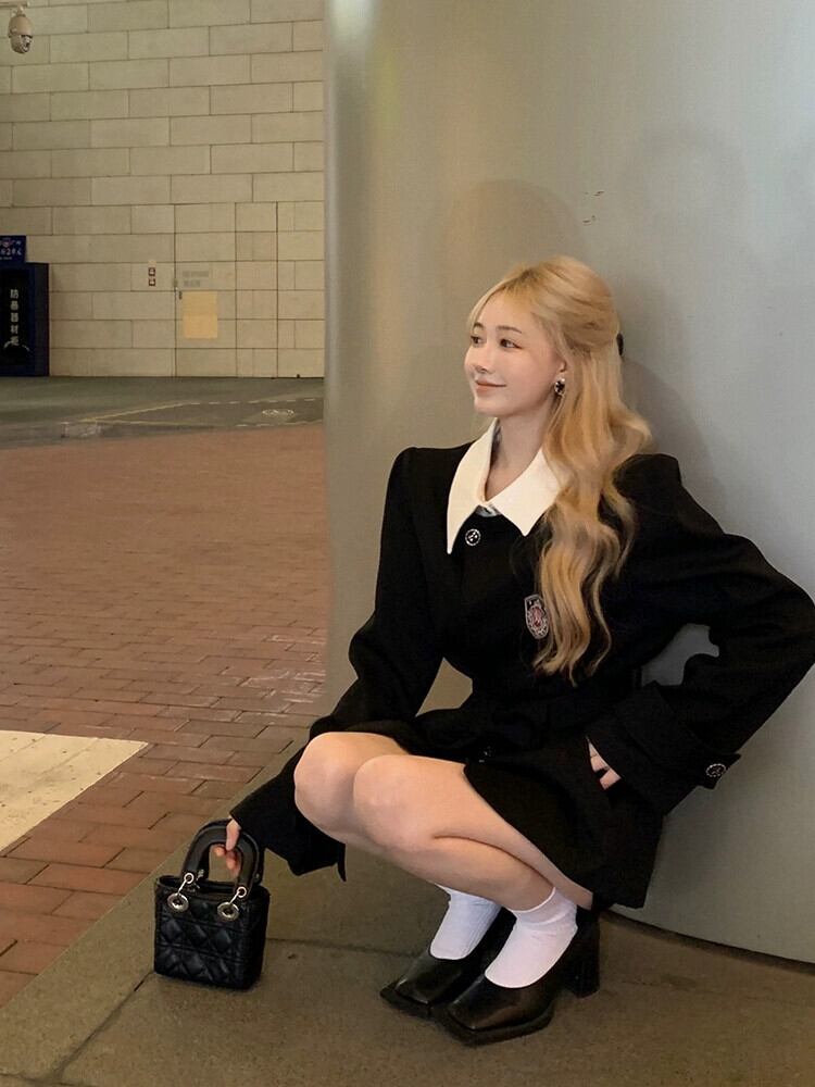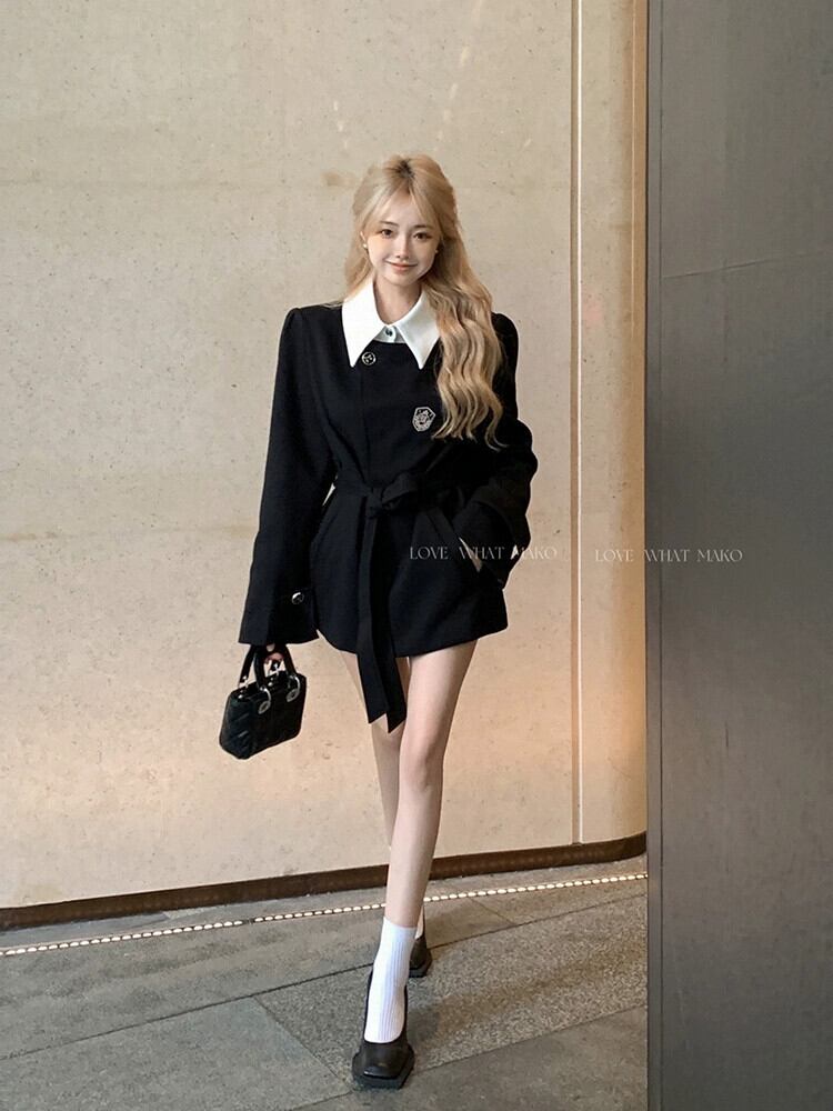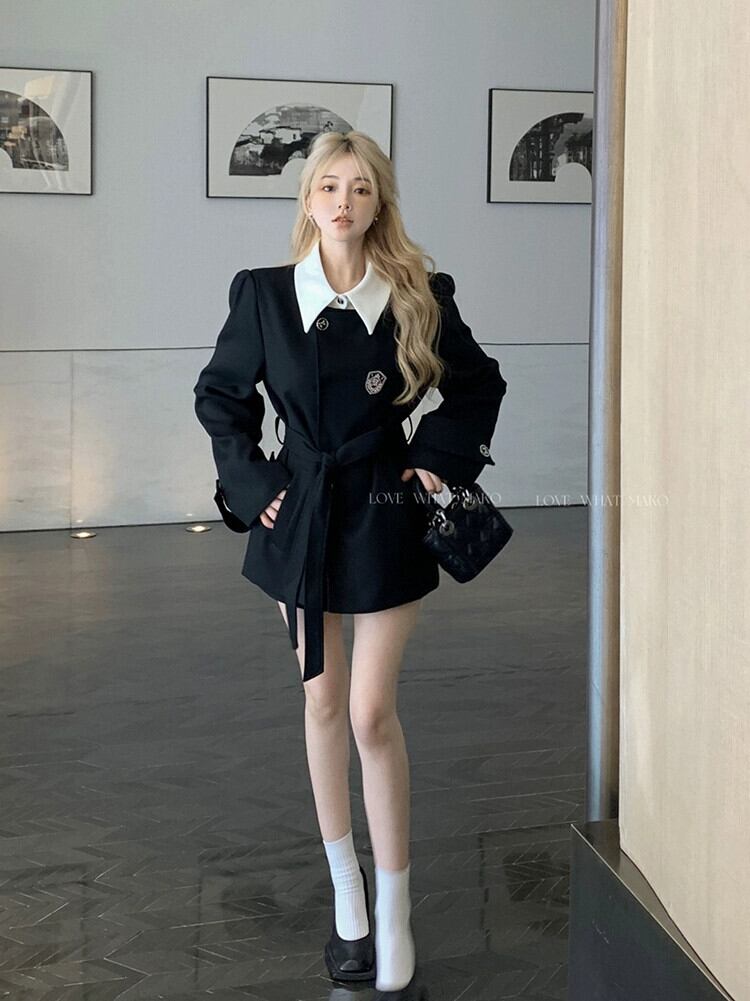 偽ツーピーススーツジャケット女性秋 2023 新しいカレッジスタイルウエスト痩身デザインラペル長袖トップ ロング オータム 秋物 missk30569058832