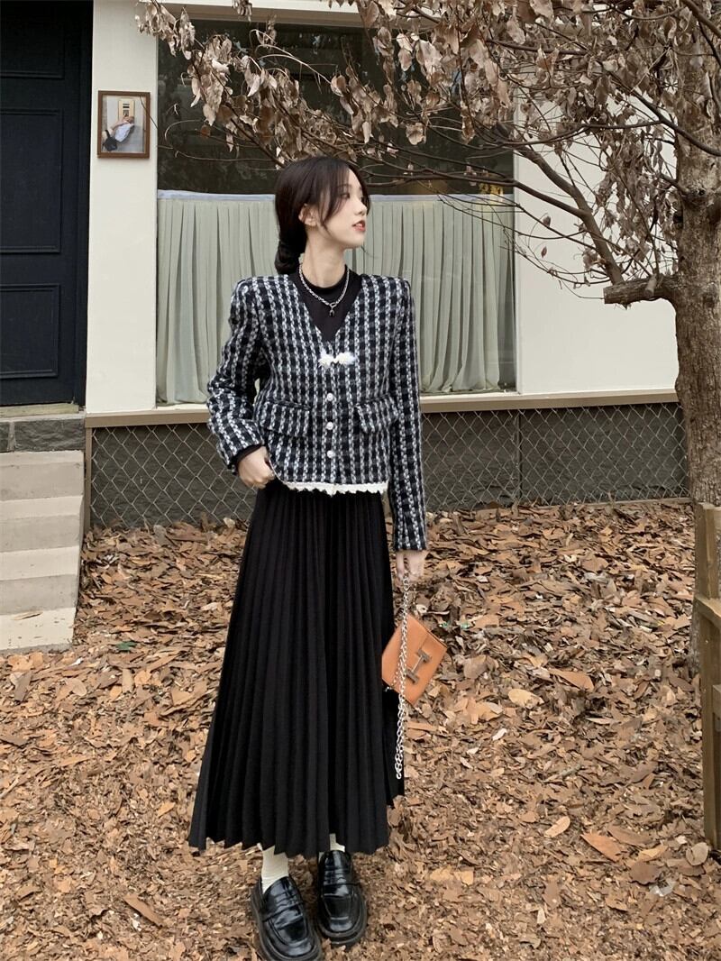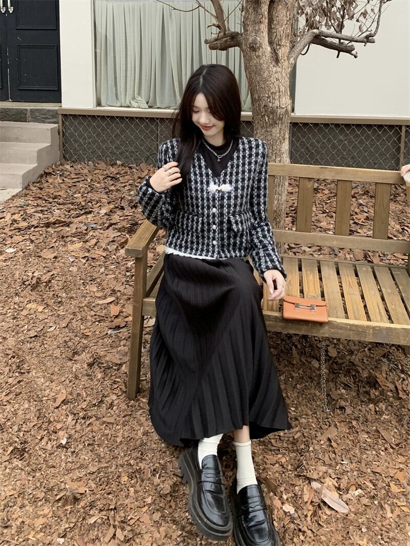 Xiaoxiang スタイル長袖コートの女性の秋 2023 新しいスタイルのハイエンドの緩い気質年齢を減らす V ネックカーディガンイン ロング オータム 秋物 Vネック missk34586728105