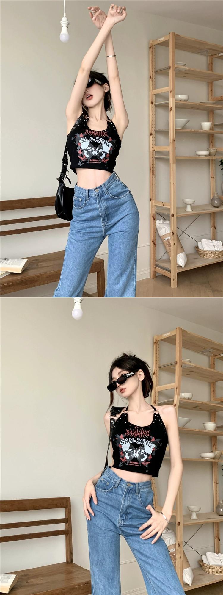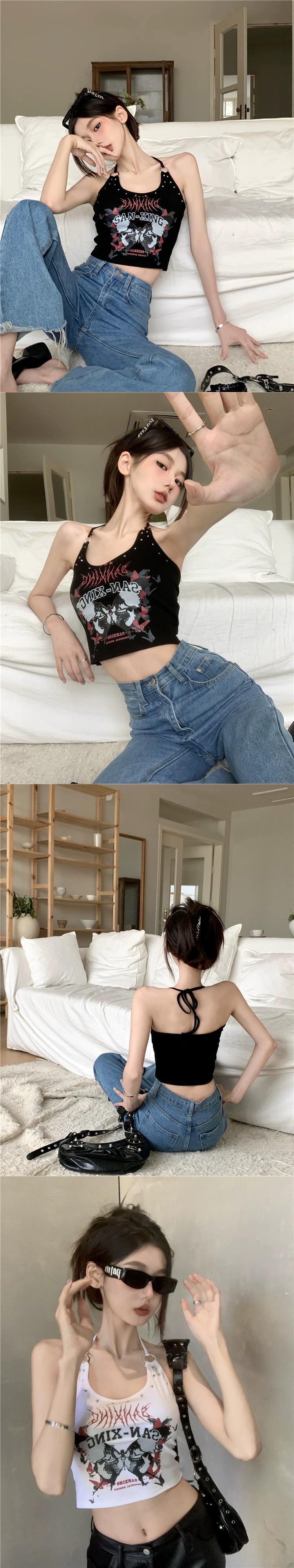 アメリカン甘くてクールなネクタイバックレスホルターネック夏の新デザインプリントへそ出しアウターベストトップ女性 大人ガーリー スウィート キュート カジュアル サマー 夏物 missk16899887602