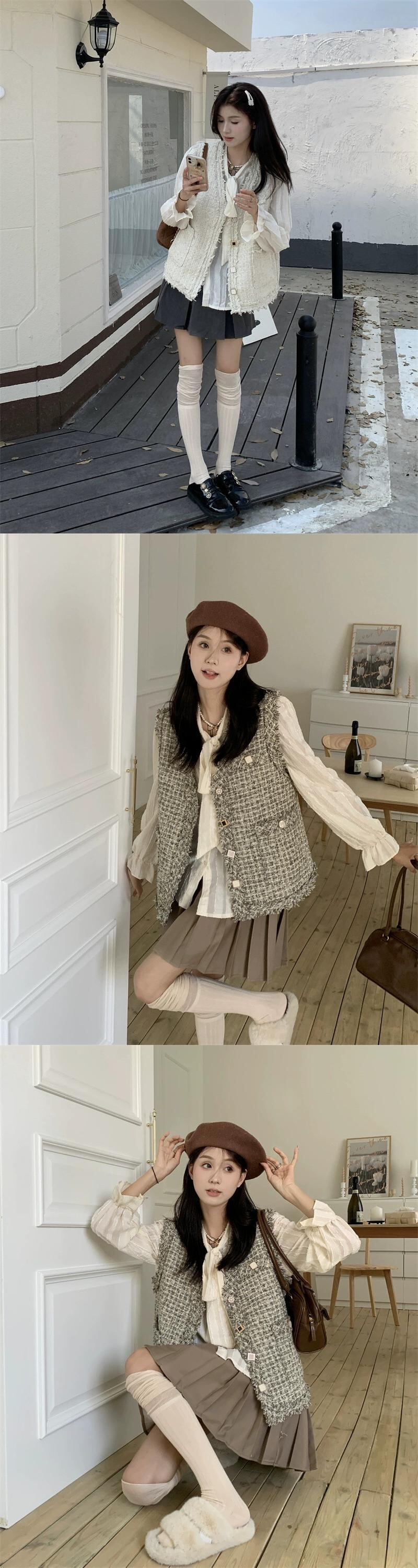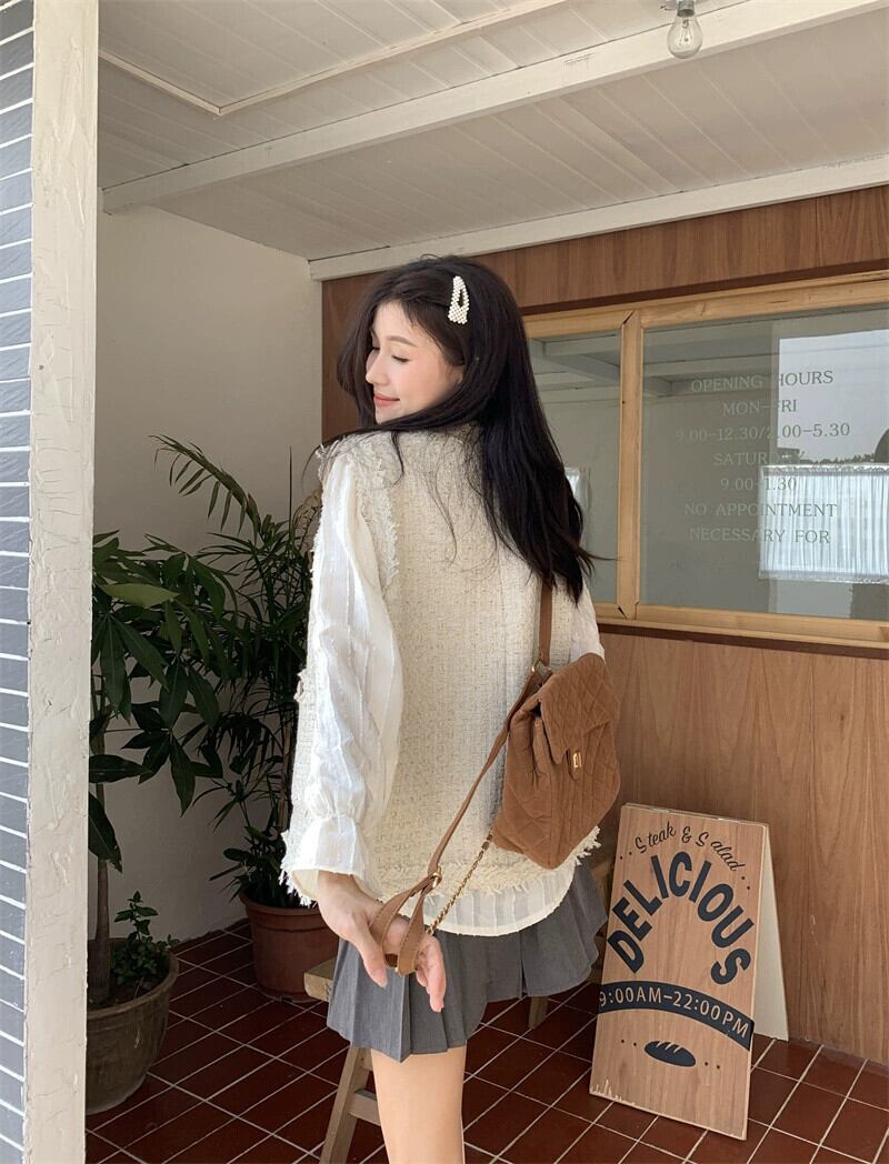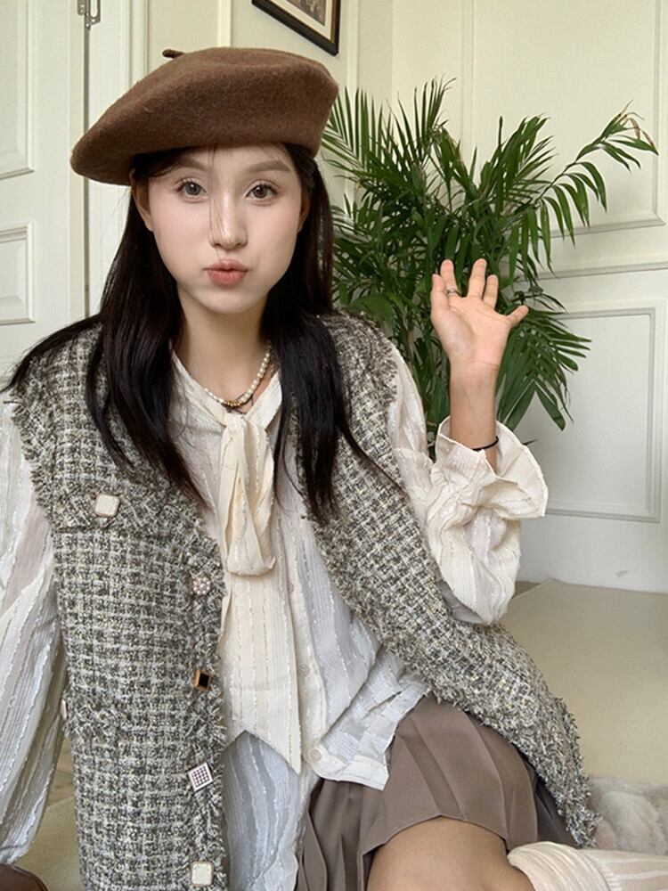 Xiaoxiangfeng ツイードベストジャケット + レースアップ長袖シャツ女性秋 2023 新しいフランスのファッションスーツ ロング オータム 秋物 missk46531348451
