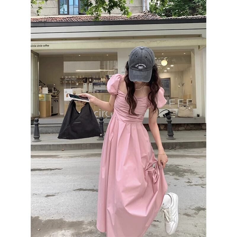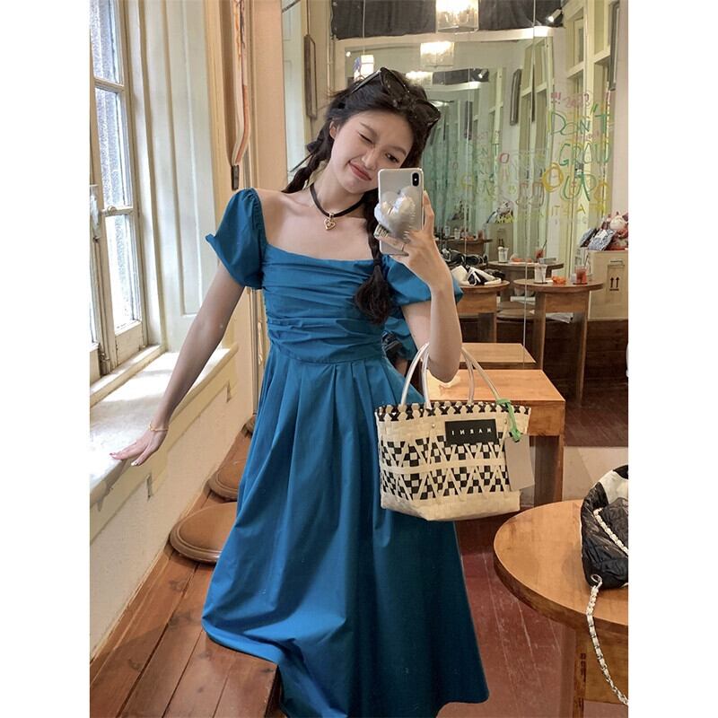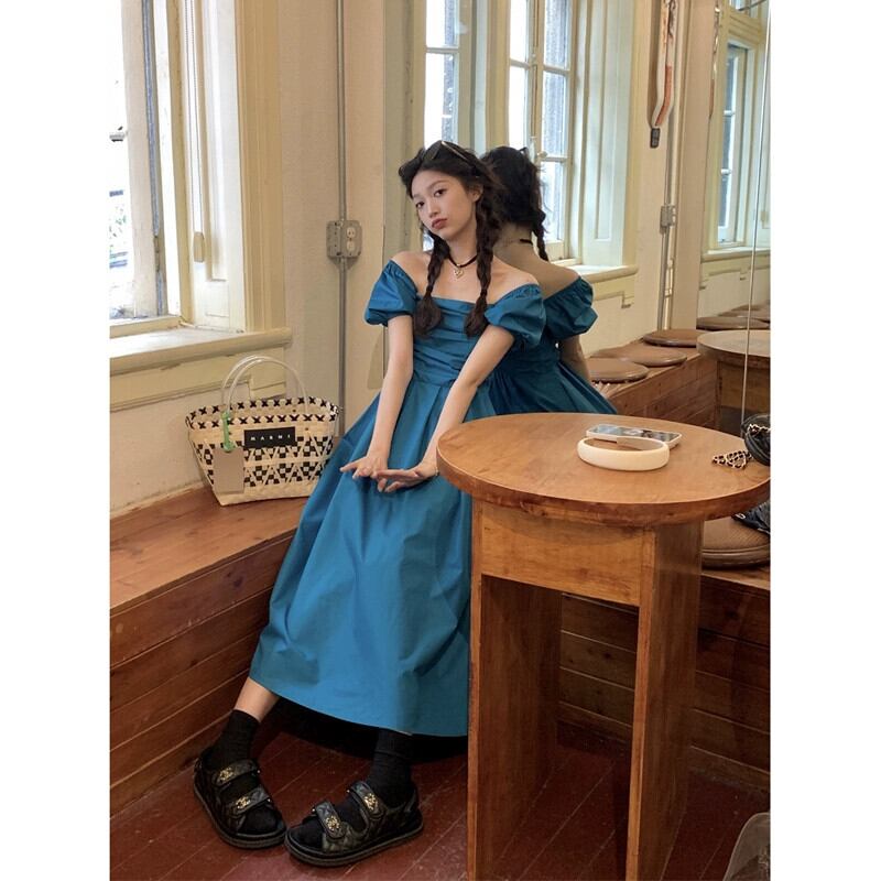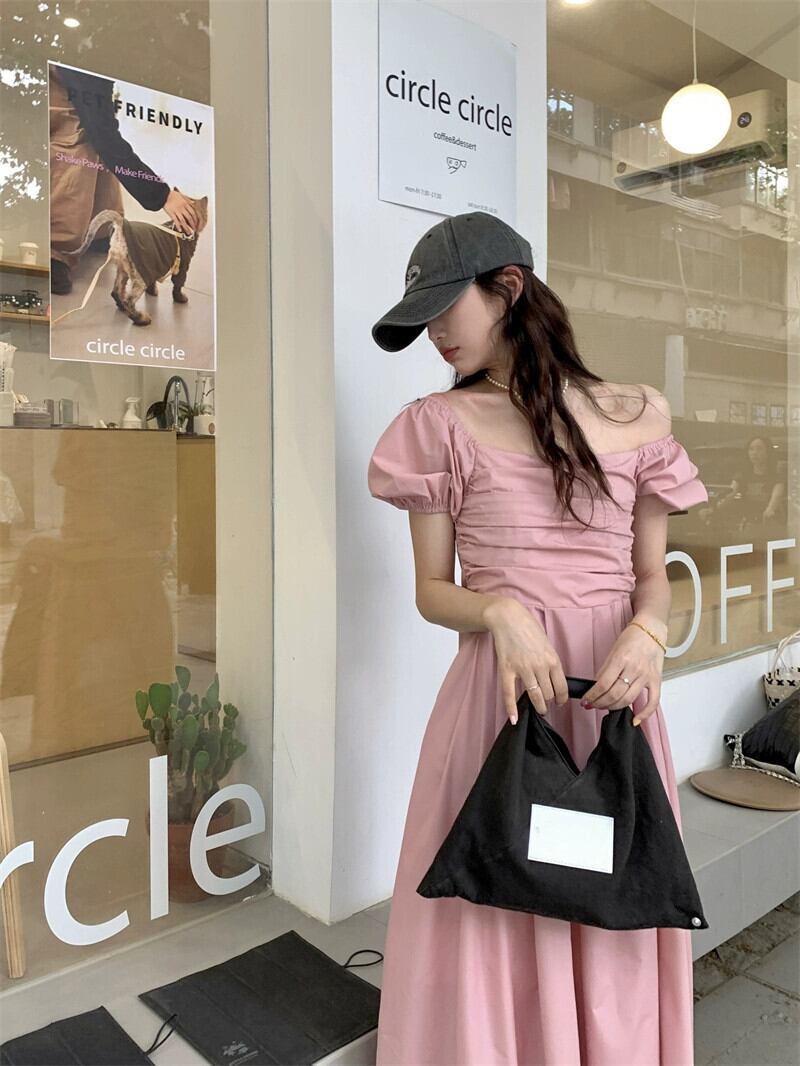 フレンチワンショルダーパフスリーブドレスレディース、夏の新しいスタイル、ウエストスリム、プリーツ、ファッショナブルでシックなロングスカート サマー 夏物 missk75913414386