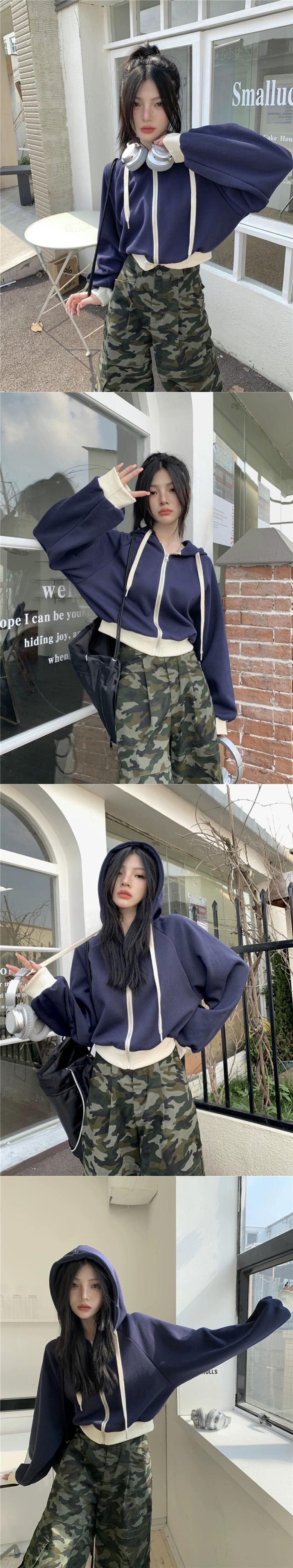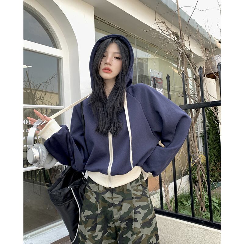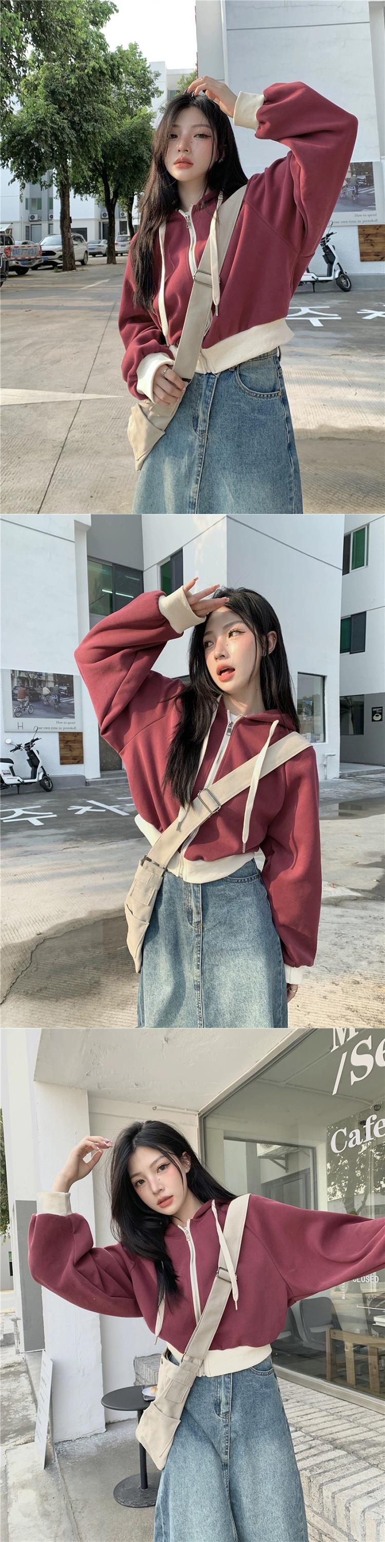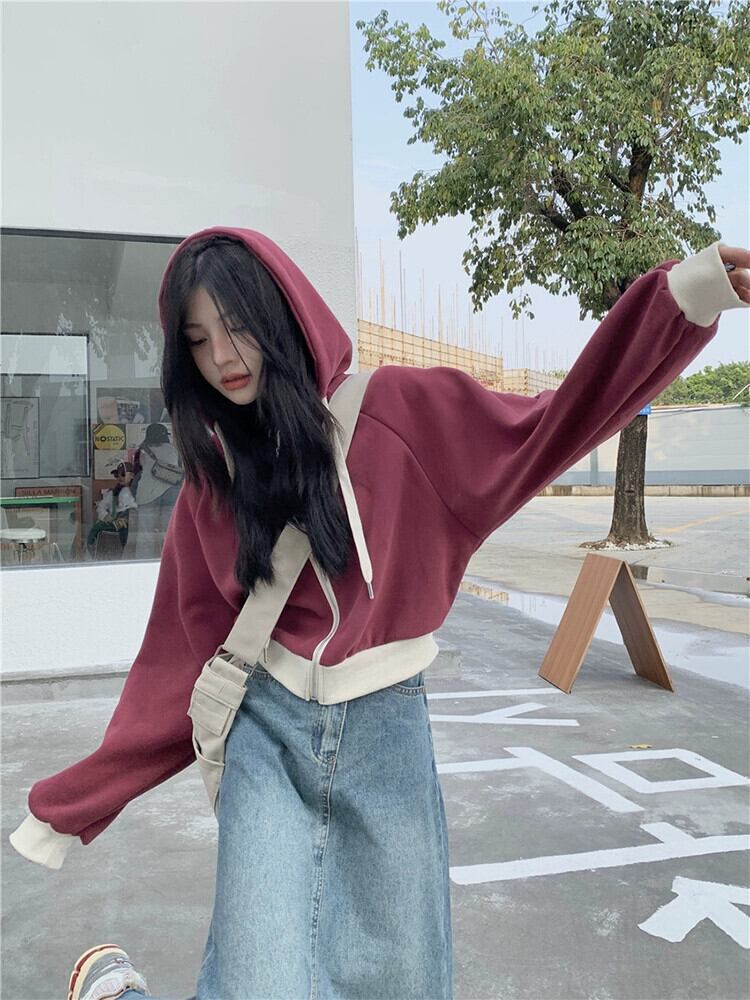 フード付き巾着トレーナー女性の秋と冬 2023 新しいレトロなカラーマッチングデザインルーズショート長袖ジャケットイン ロング オータム 秋物 ウィンター 冬物 missk50337689221