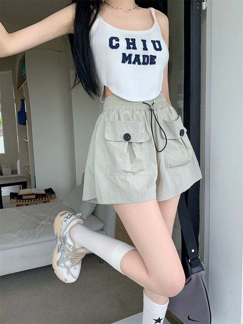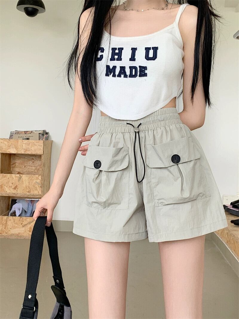 ホットガールカーゴショーツ女性の夏バージョン2023ウエスト痩身ドローストリングAラインワイドレッグパンツ サマー 夏物 ブルマー ワイドパンツ missk56224916299