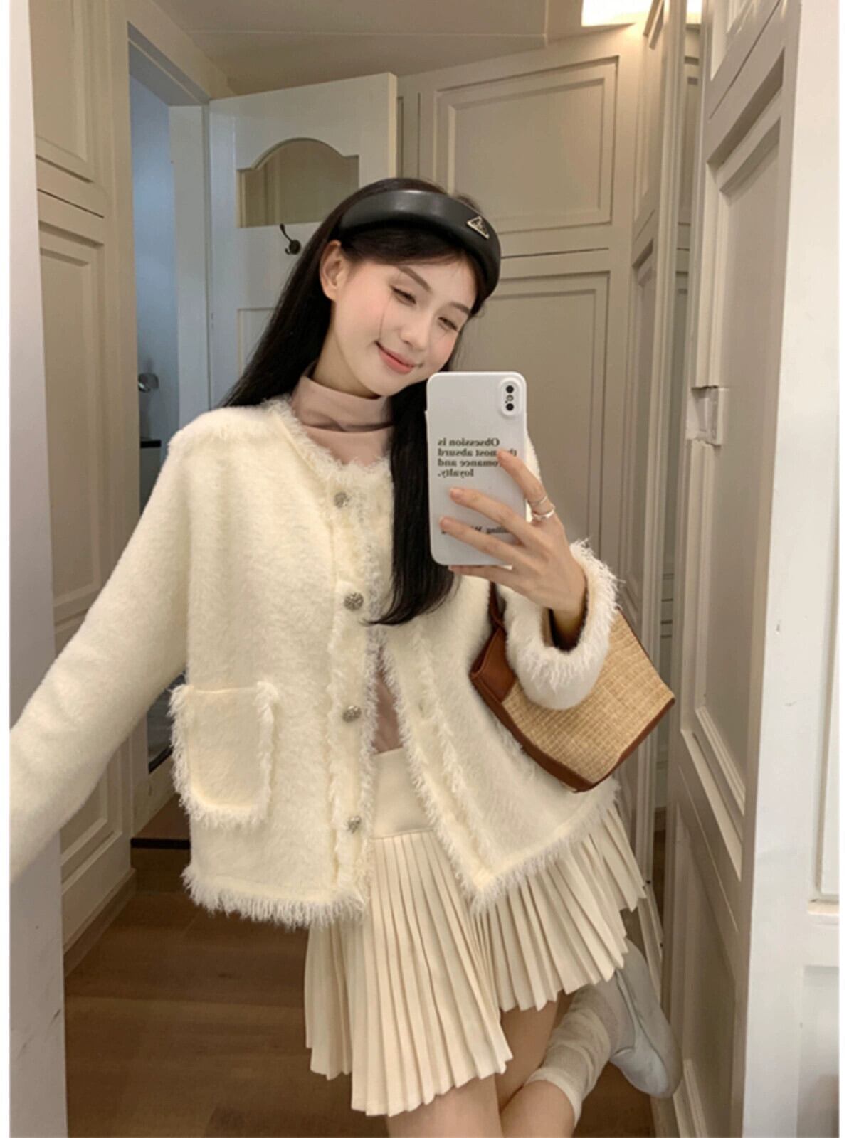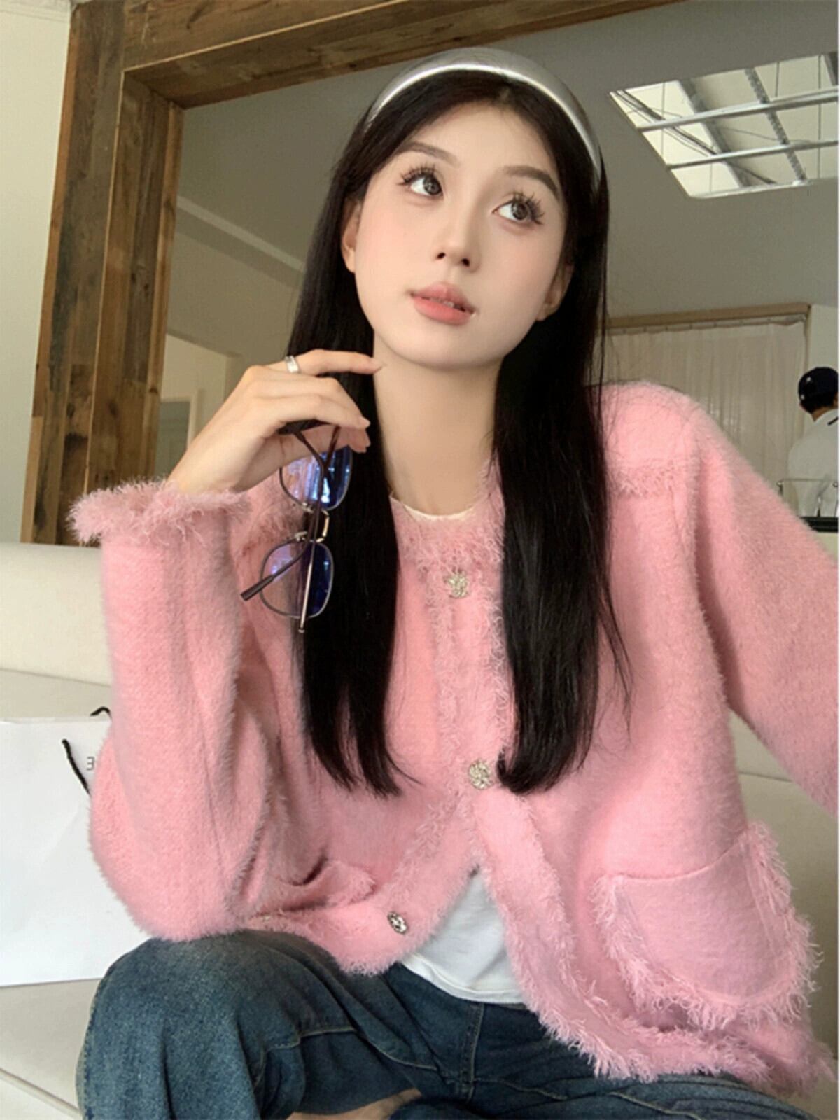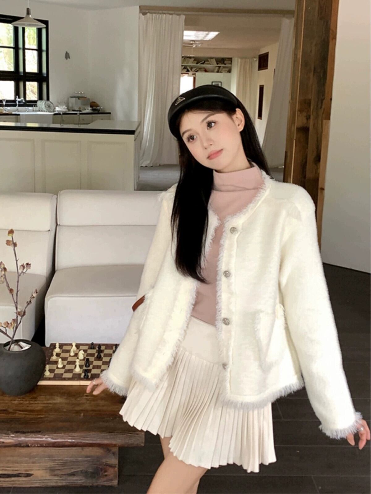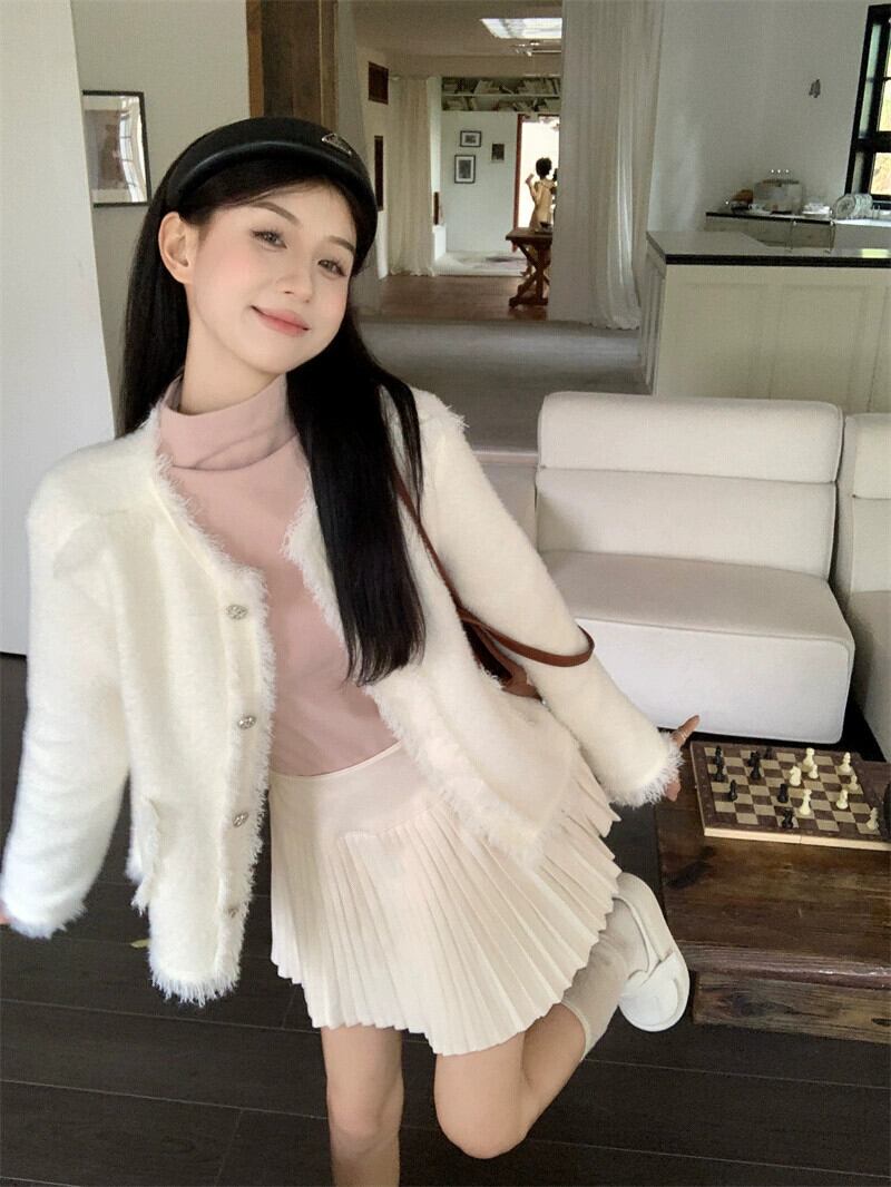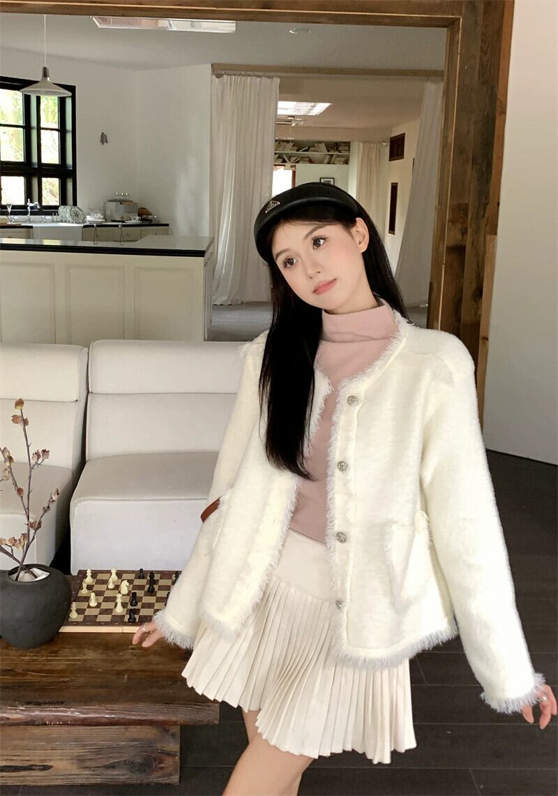模造ミンクベルベット長袖セータージャケット女性秋 2023 新しいスタイルの小さな香りハイエンドショートシックなセーター ロング オータム 秋物 missk13554388816