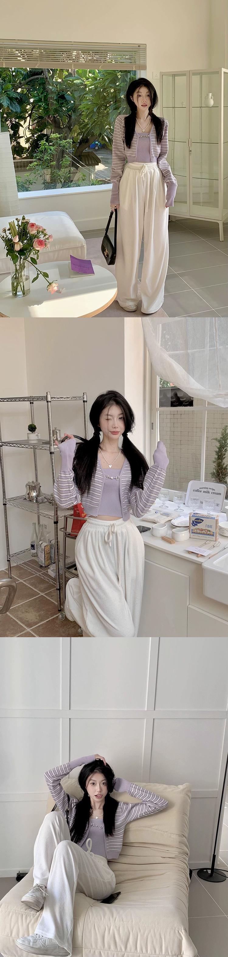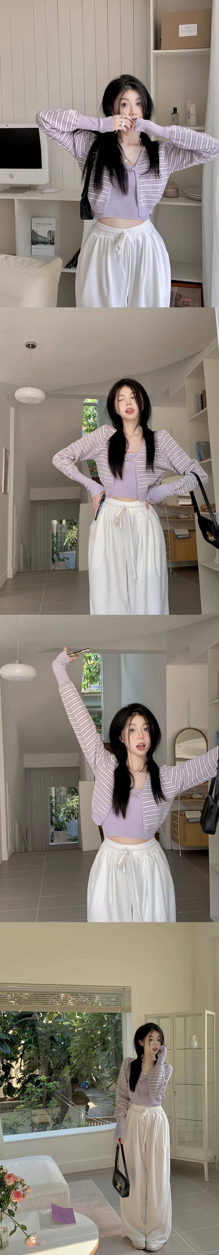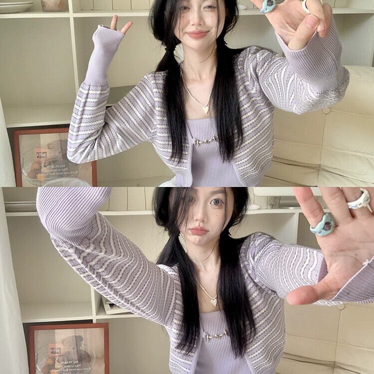 ホットスタイルストライプニットカーディガンスーツ夏の新紫気質ジャケットサスペンダーファッショナブルなツーピースセット女性 サマー 夏物 パープル missk6212618795