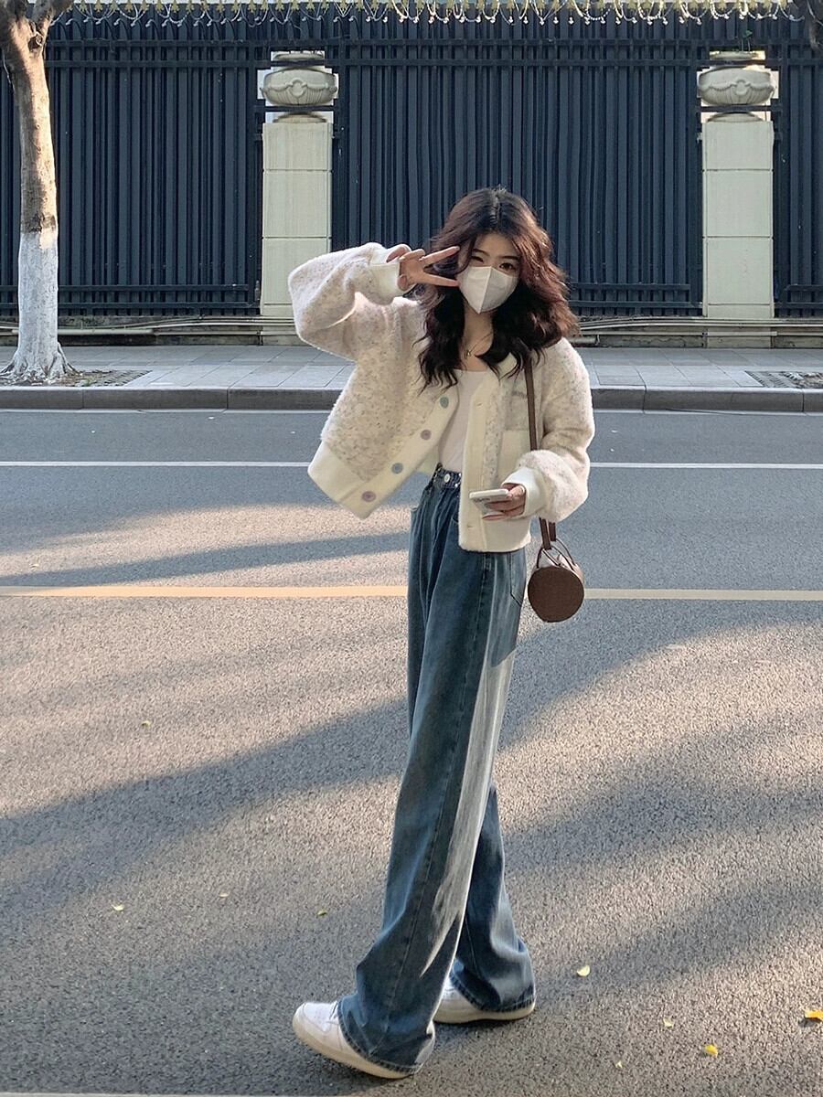 Vネックショートセータージャケットレディース2023秋新しいデザインセンス甘くて年齢を減らす気質長袖ニットカーディガン ロング 大人ガーリー スウィート キュート カジュアル オータム 秋物 missk4880016684