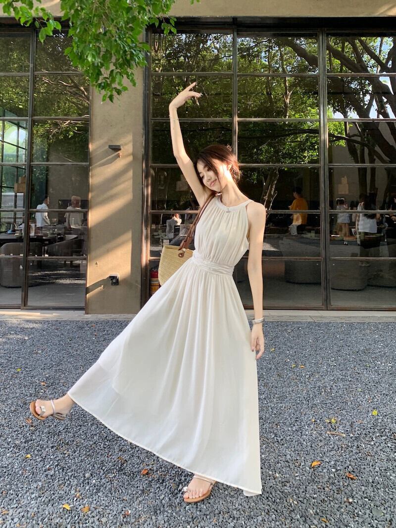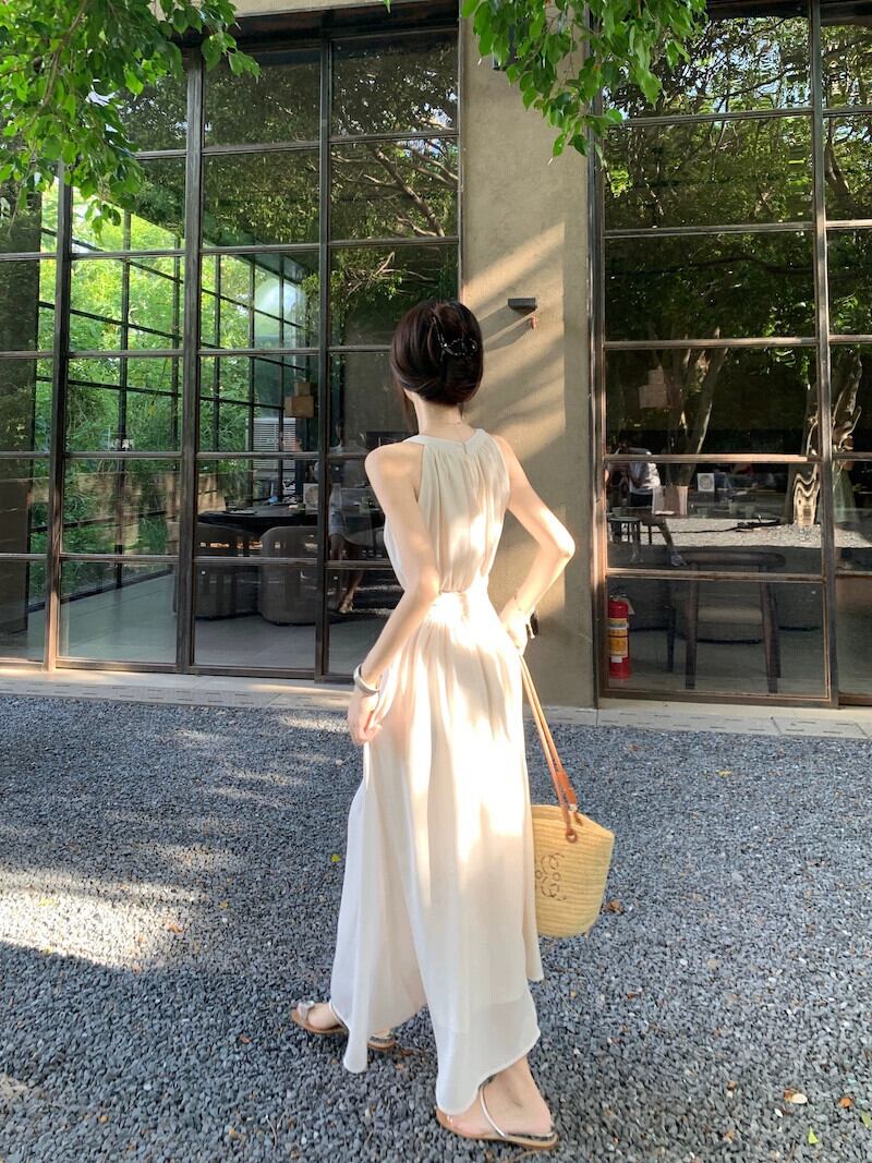 ノースリーブドレスの女性の夏バージョン 2023 新しいエレガントな気質オフショルダーウエスト痩身ミッドレングス A ラインスカート サマー 夏物 Aライン missk4368287609