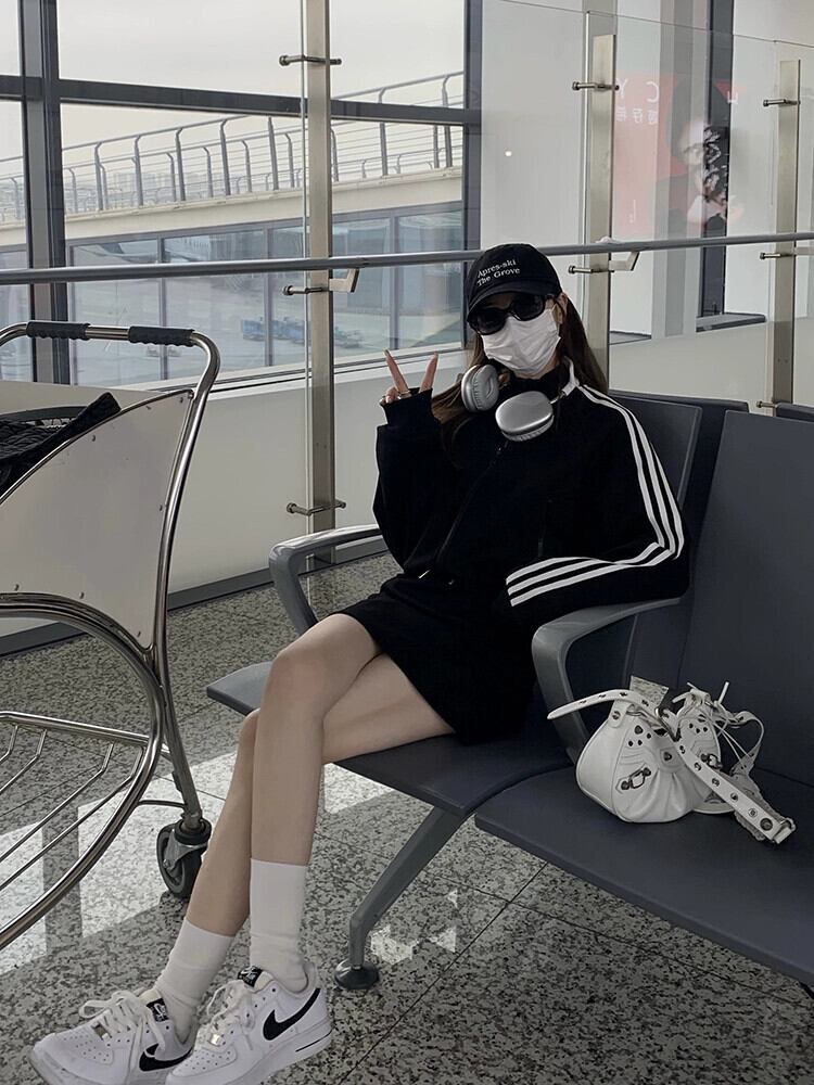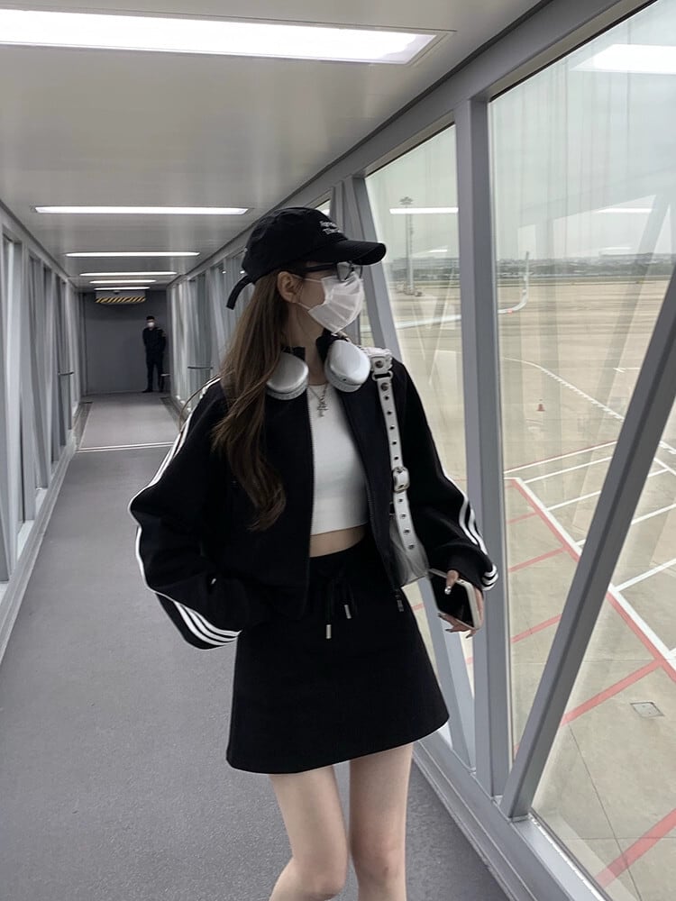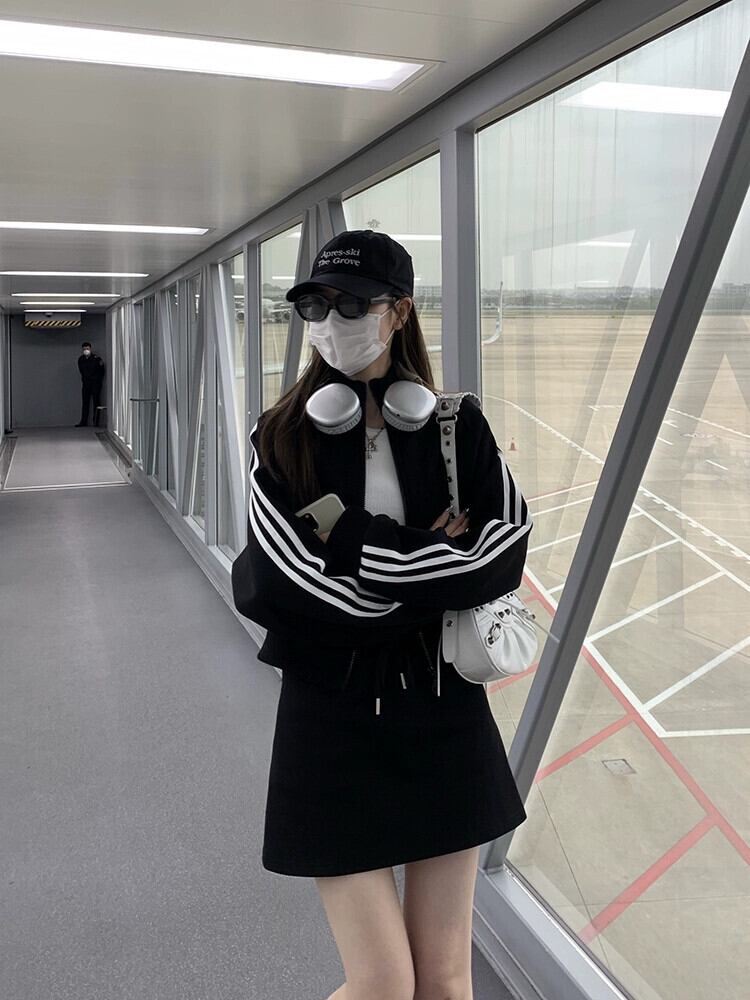 アメリカンレトロコントラストカラーストライプ長袖ベースボールジャケット A ラインスカート女性の秋 2023 スーツ ロング オータム 秋物 Aライン missk16384027051