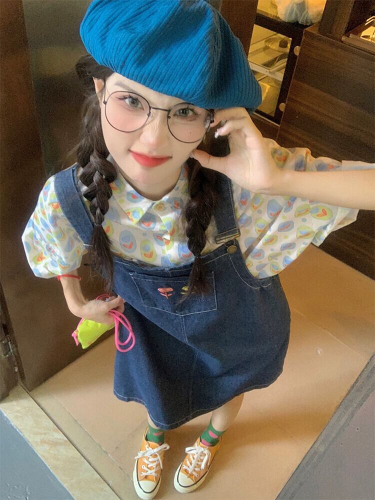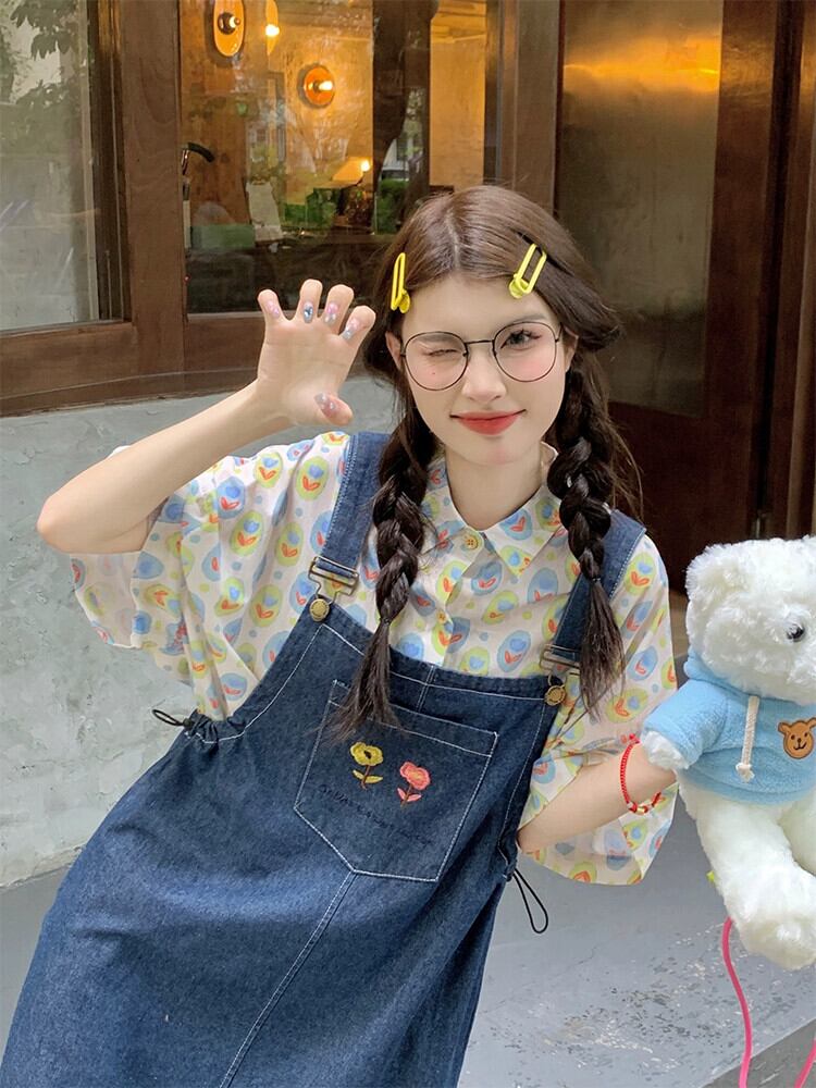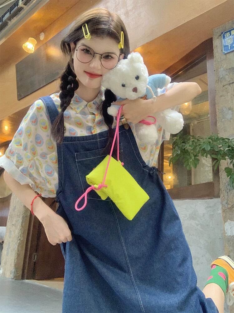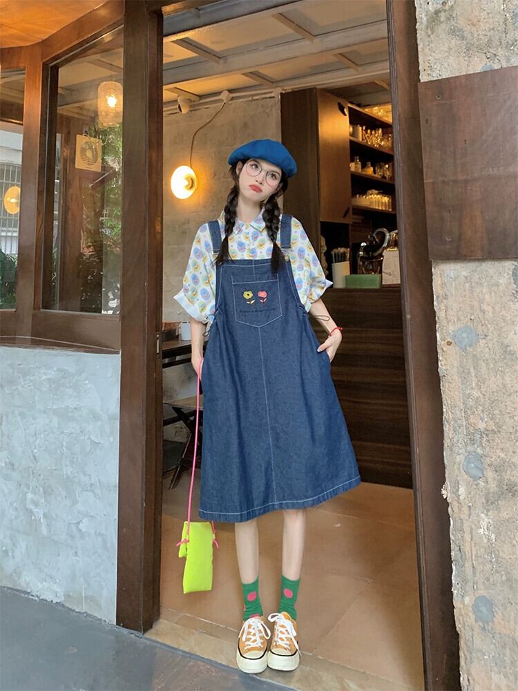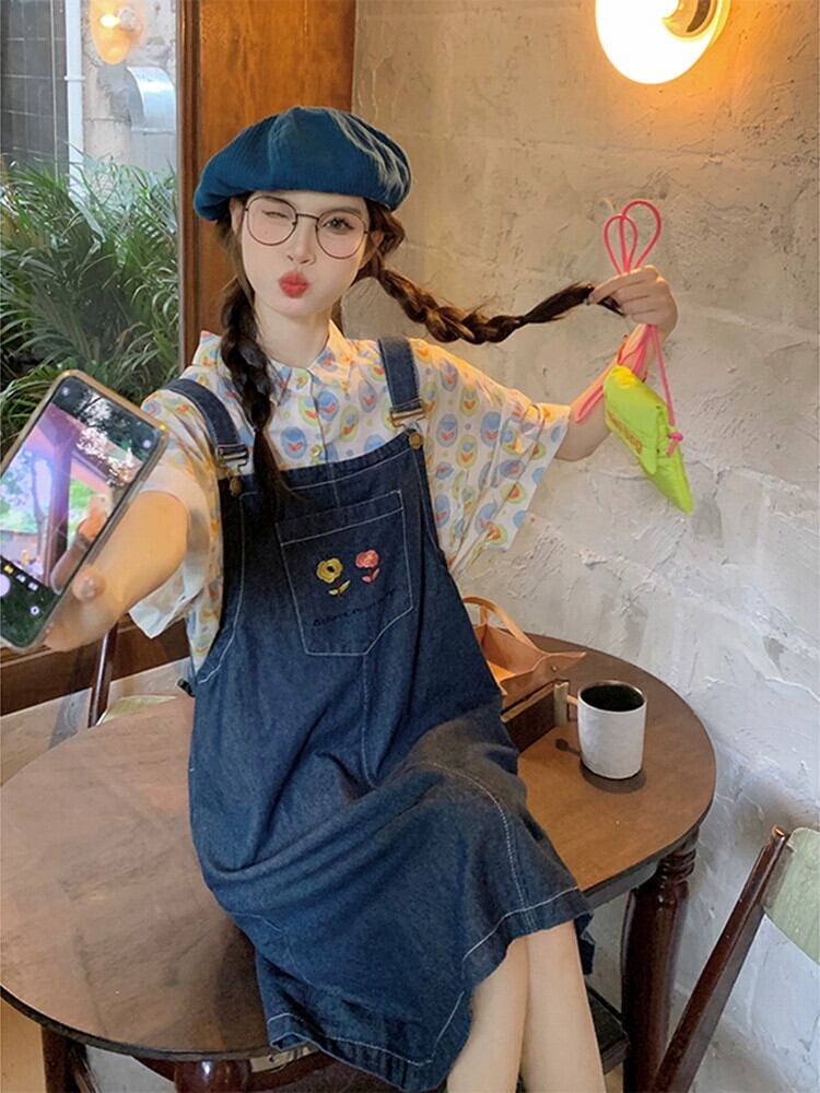 ドーパミン着用ストラップデニムドレス女性の夏の新しいファッションルーズ多目的シックな刺繍ショートスカート レッド サマー 夏物 missk16960122576