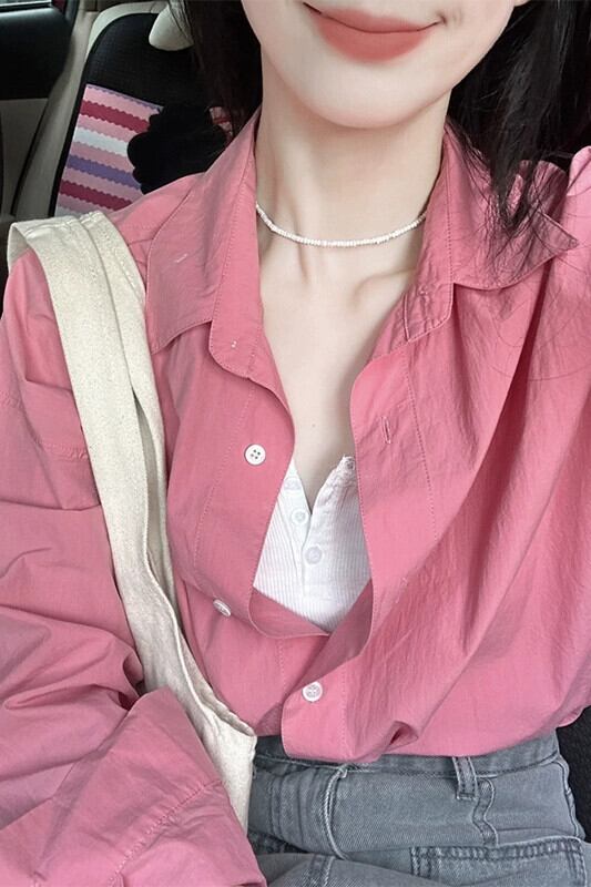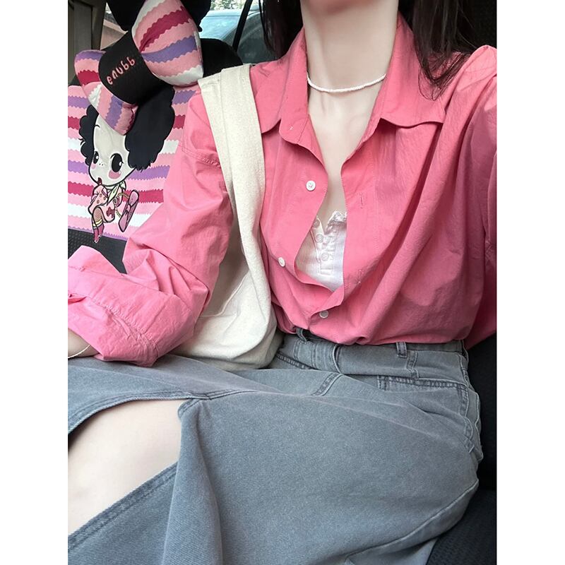 テクスチャードピンク長袖シャツレディース秋バージョン2023新デザインニッチ多用途ルーズカーディガン ロング レッド オータム 秋物 missk1113751296