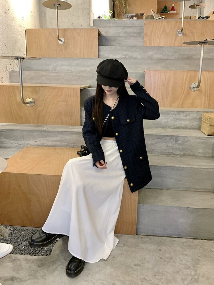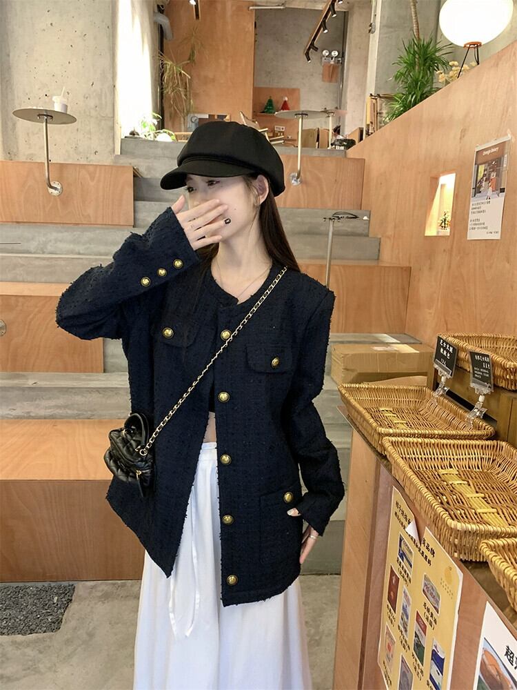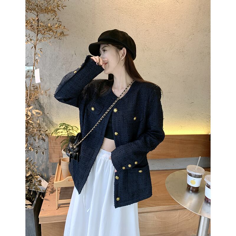 2023 秋の新スタイルの小さな香りのスタイルルーズミッドレングスツイードジャケットシックなメタルバックルトップの女性のトレンド オータム 秋物 missk95741581908