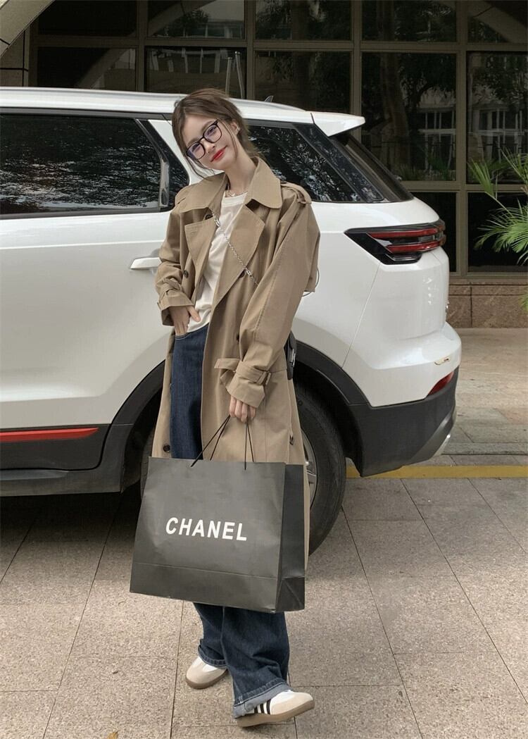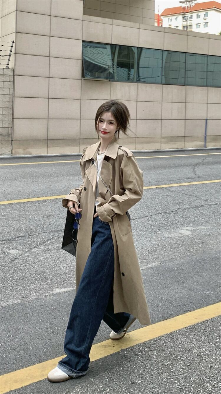 2023 初秋の新スタイル英国スタイルのハイエンドファッションクリック多目的ダブルブレストミッドレングスウインドブレーカージャケット女性 オータム 秋物 missk24942333984