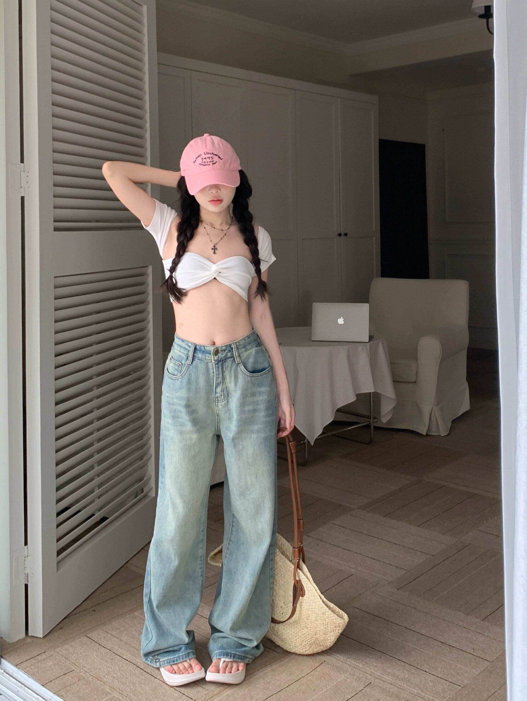 アメリカンレトロデニムパンツレディース夏の新ハイウエストスリムデザインワイドレッグストレートレッグフロアレングスパンツ サマー 夏物 missk34225143648