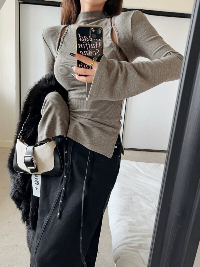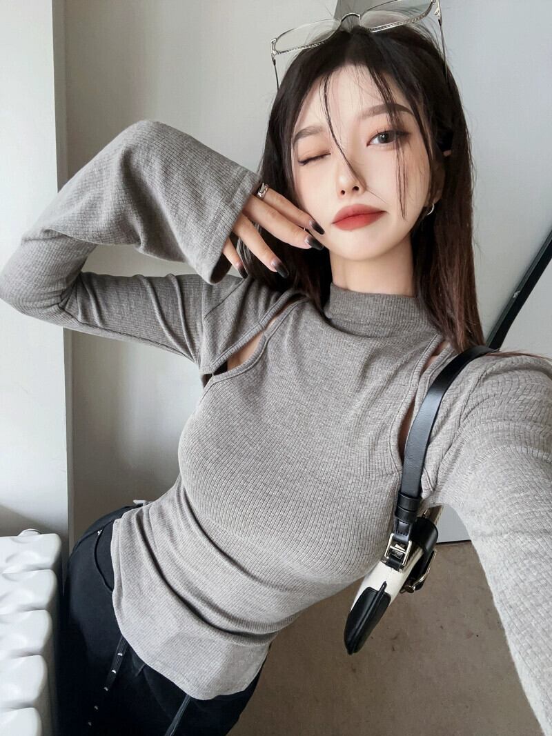 Hot Girl 中空長袖セーター レディース 2023 秋 フレンチ スリム フィット ボトリング トップ ロング オータム 秋物 missk74048548878