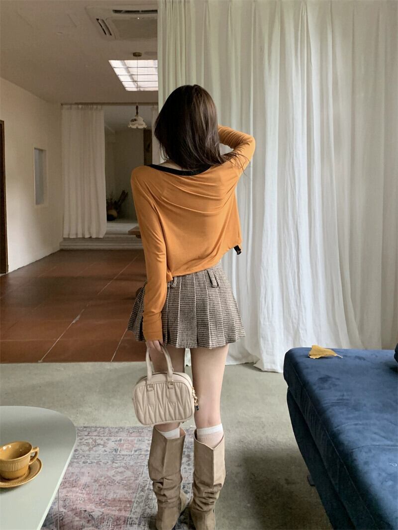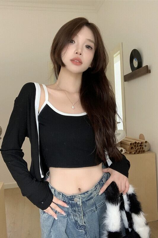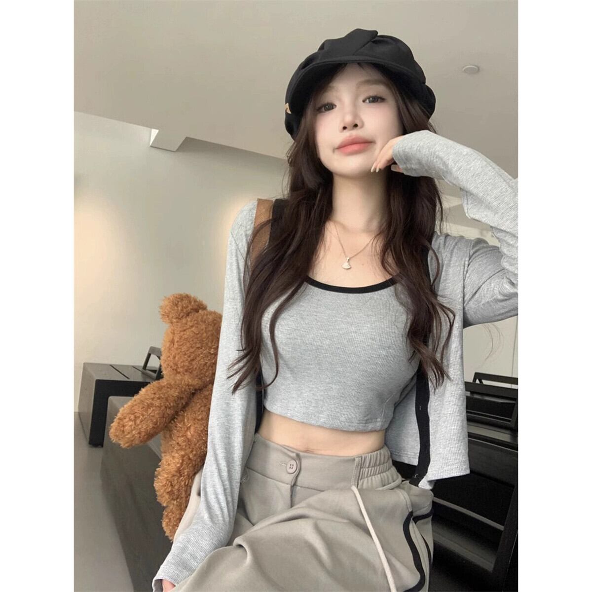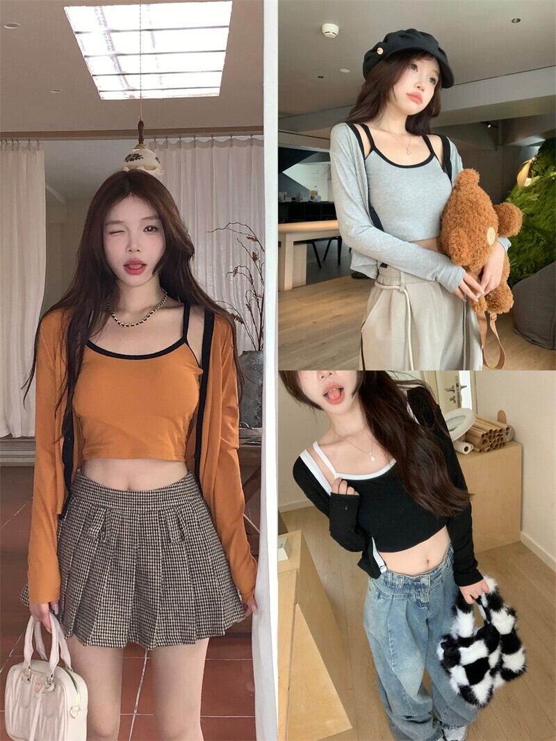 2023年初秋新スタイル多用途おしゃれなコントラストカラーニットカーディガンレディース+胸パッド付きキャミソール2点セット オータム 秋物 missk26182709430
