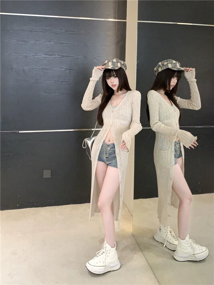 純粋な欲望スタイル長袖日焼け止めセーター女性秋バージョン 2023 新しい痩身ミッドレングスカーディガン ロング オータム 秋物 missk84871359545