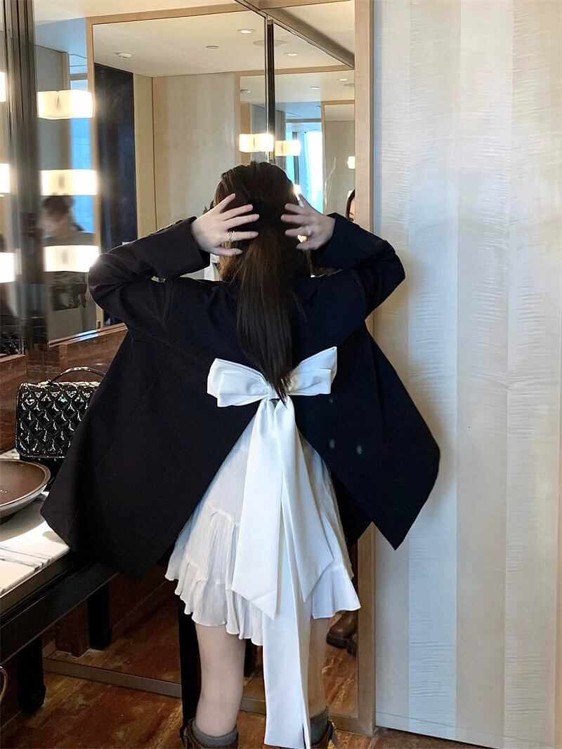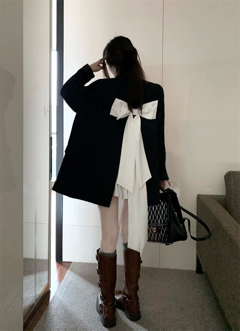 2023 初秋の新スタイル ins デザインバックスリットリボン黒カジュアルスーツジャケット女性 ブラック オータム 秋物 missk74949087014