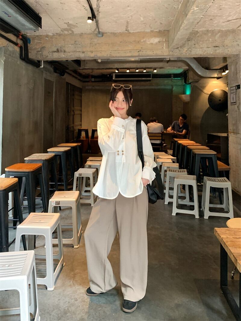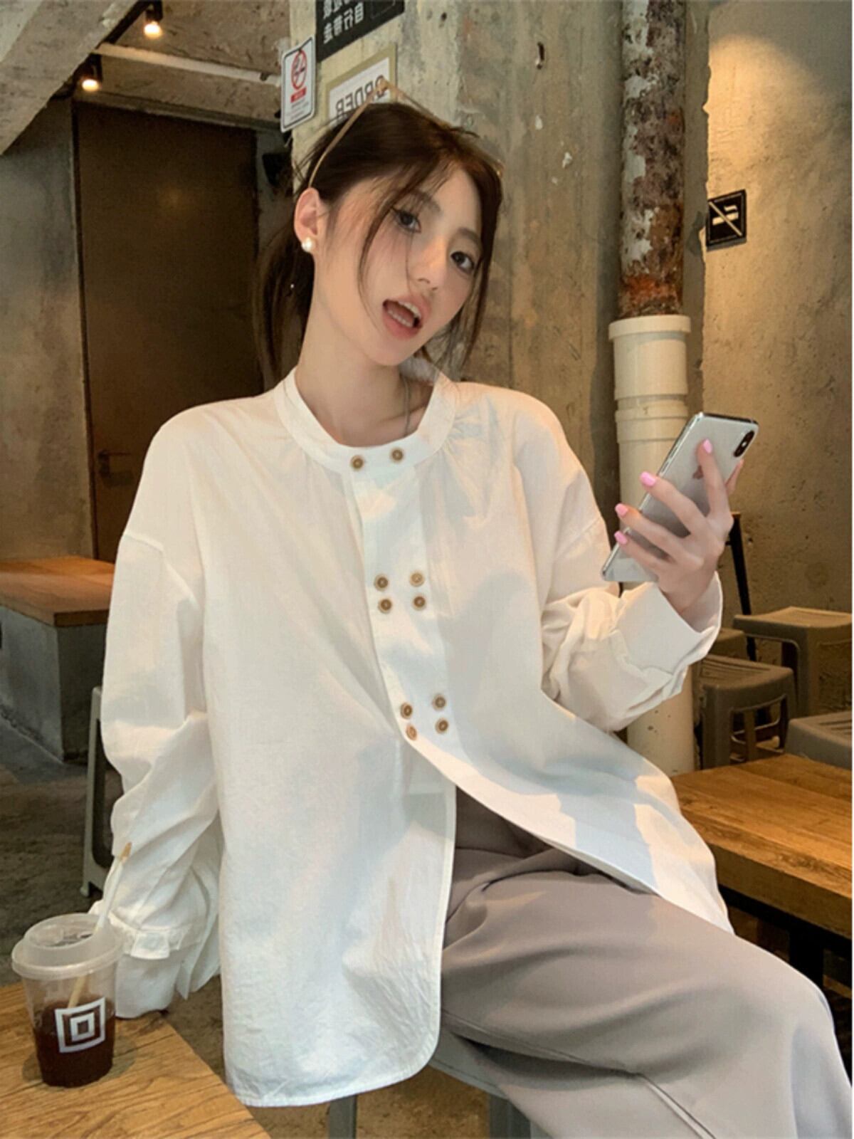 フランス文学シャツ女性 2023 秋の新しいダブルブレストデザインニッチルーズミッドレングス長袖シャツ ロング オータム 秋物 missk59200476060