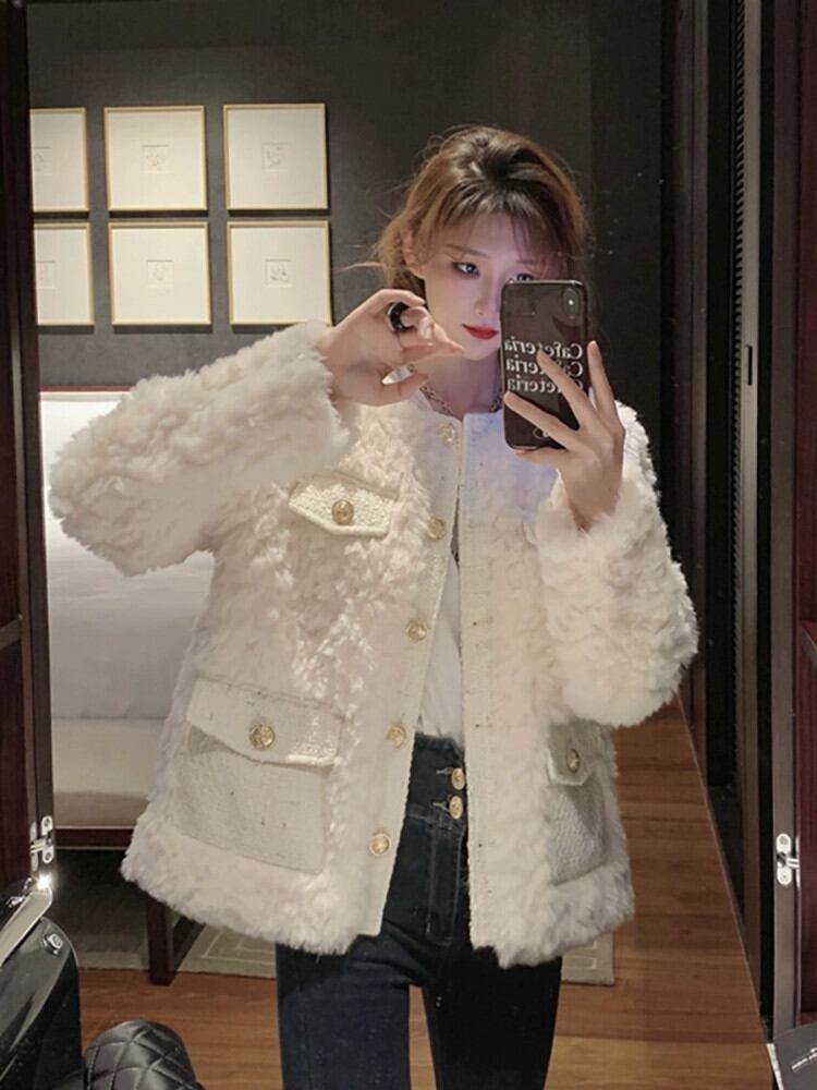 Xiaoxiangfeng 模造ラムウールプラスベルベットジャケット秋と冬 2023 新しい肥厚ファッショナブルなスタイルスタイルトップス女性 オータム 秋物 ウィンター 冬物 missk87923572195