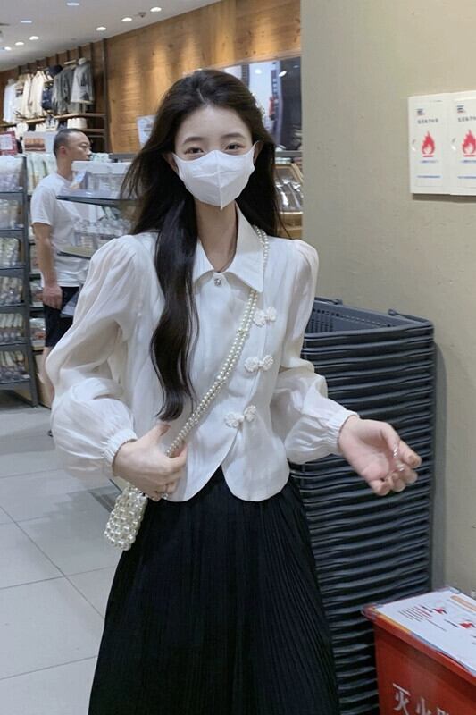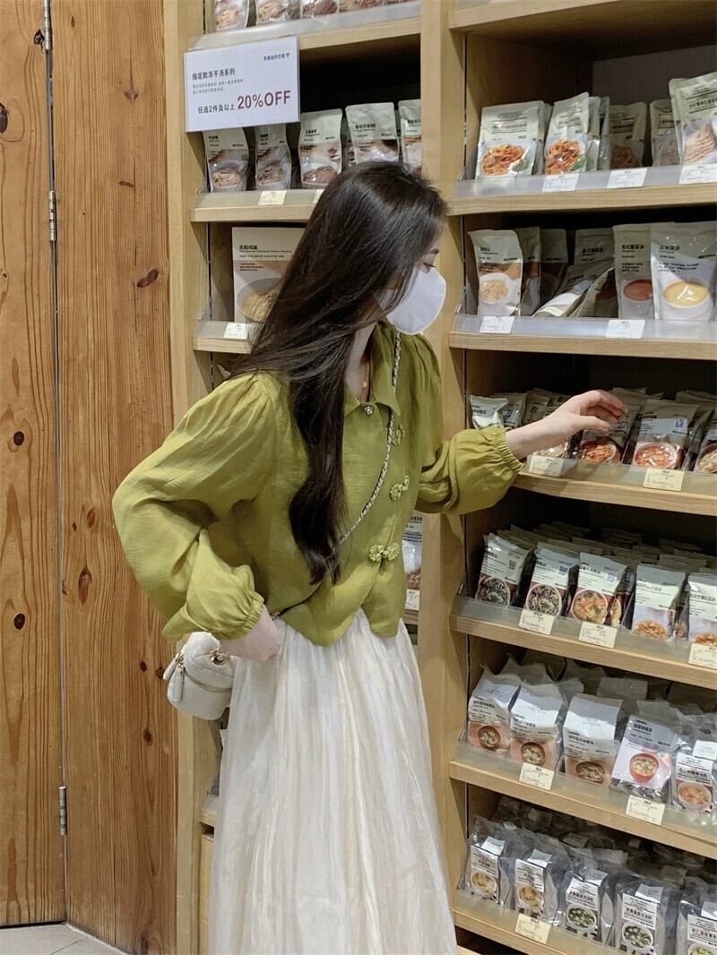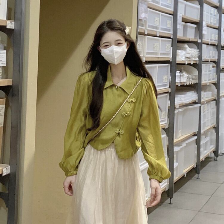 中国風シャツの女性の2023年初秋の新しいプレートボタンデザイン不規則なショートスタイルのハイエンド長袖トップ ロング オータム 秋物 missk2819331849