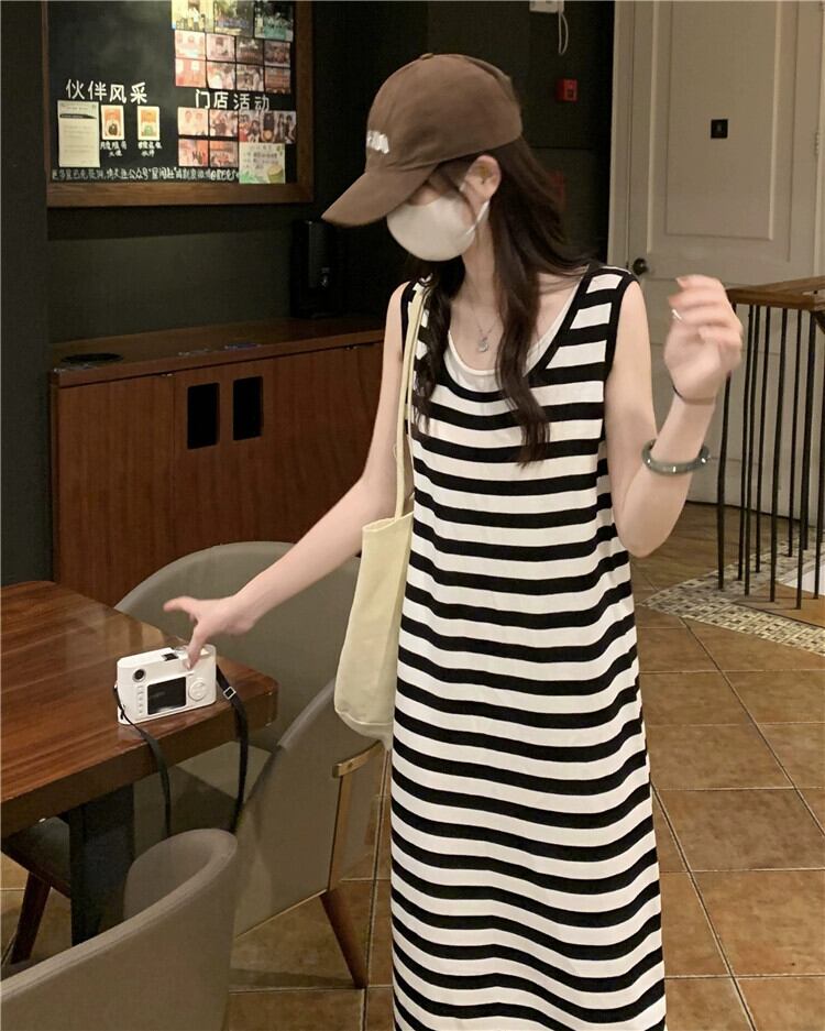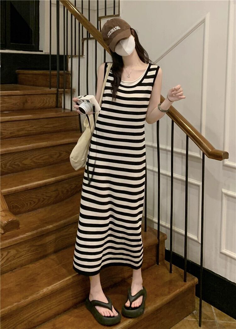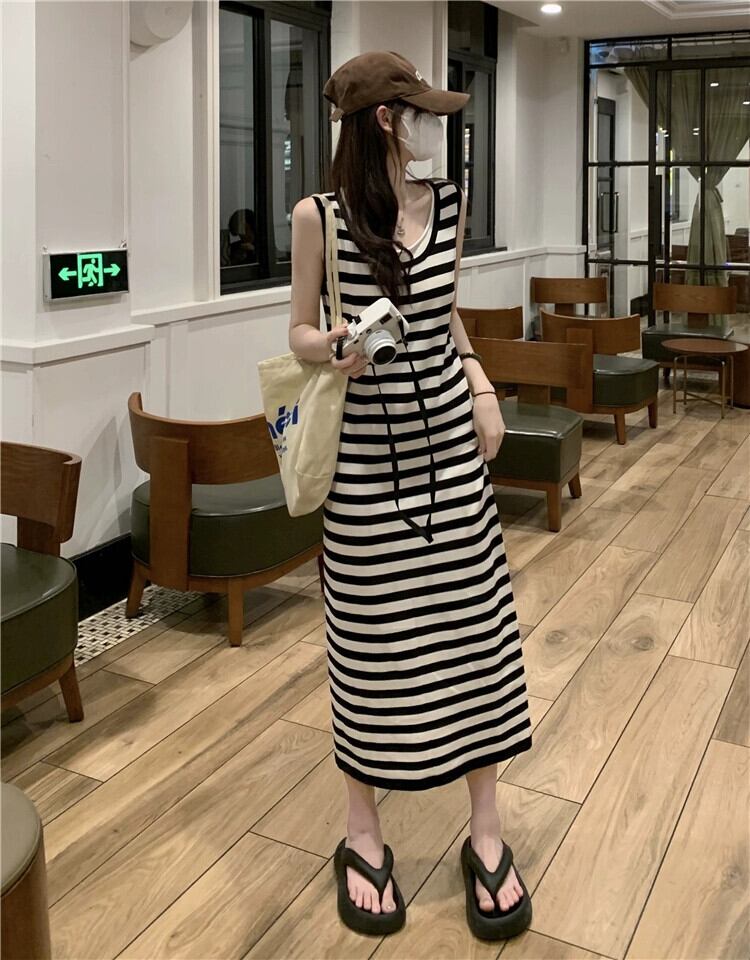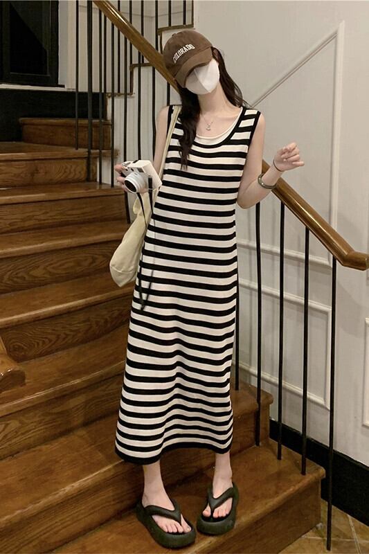 コントラストカラーニットベストドレス女性の夏の新しいフレンチレトロデザイン偽ツーピースアウター痩身ロングスカート サマー 夏物 missk43680963887