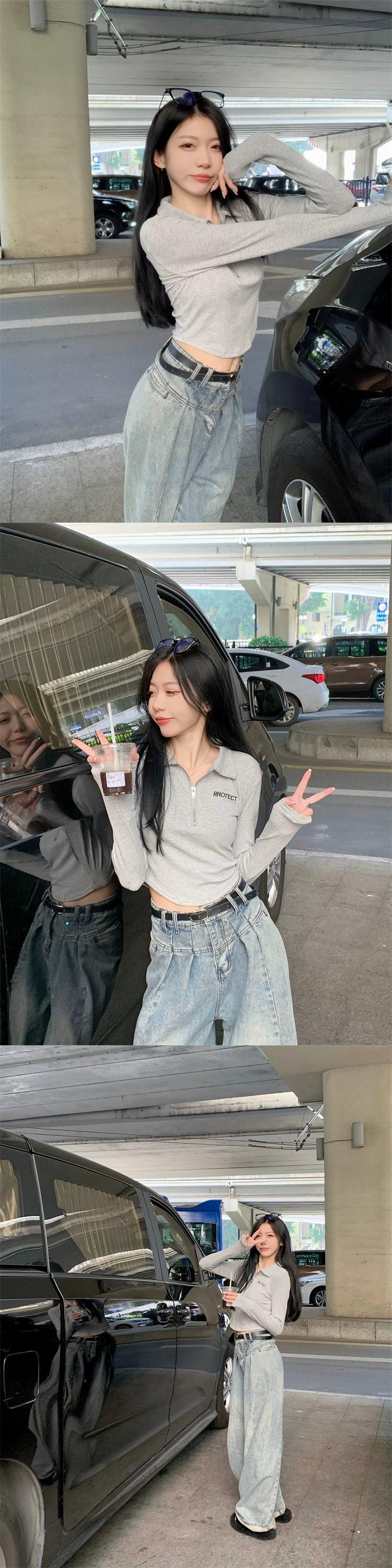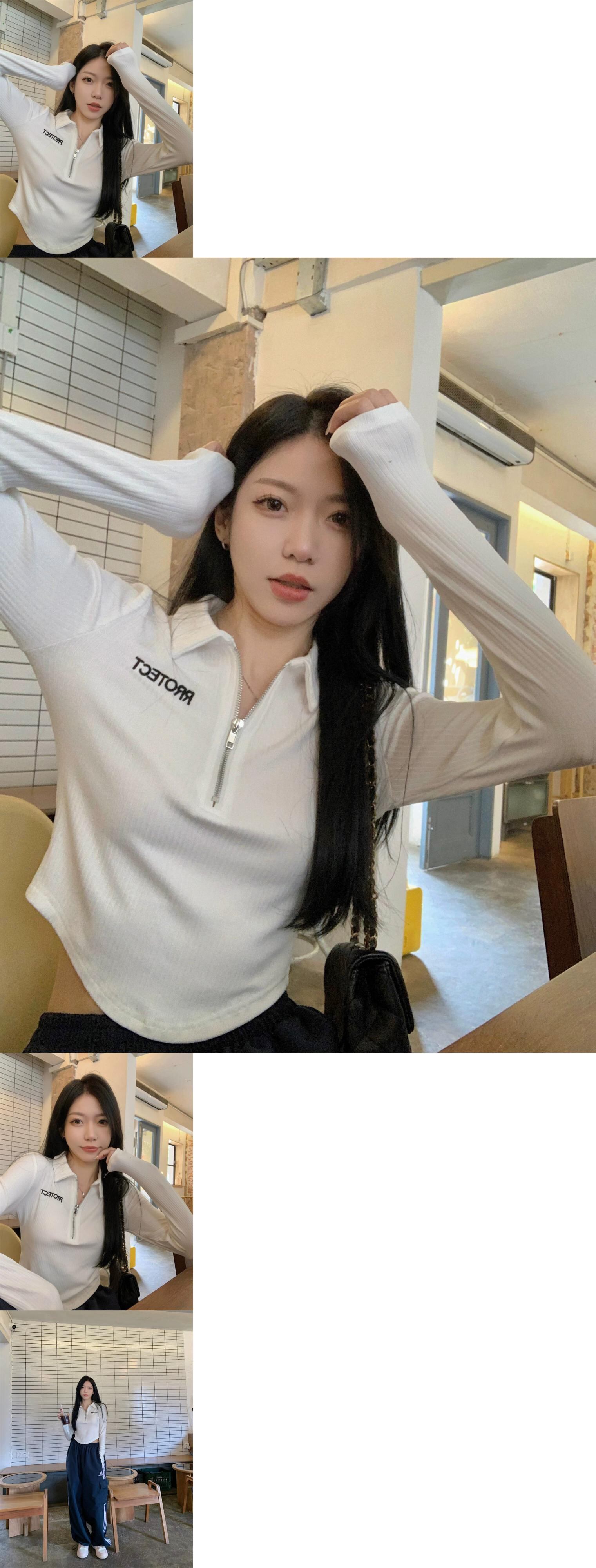 ポロカラー Tシャツレディース 2023 夏の新しいレトロスリムスリムレタープリントジッパーショート長袖トップ ロング サマー 夏物 missk14645890321