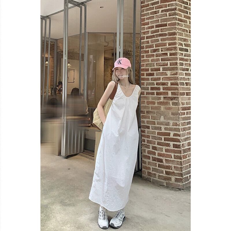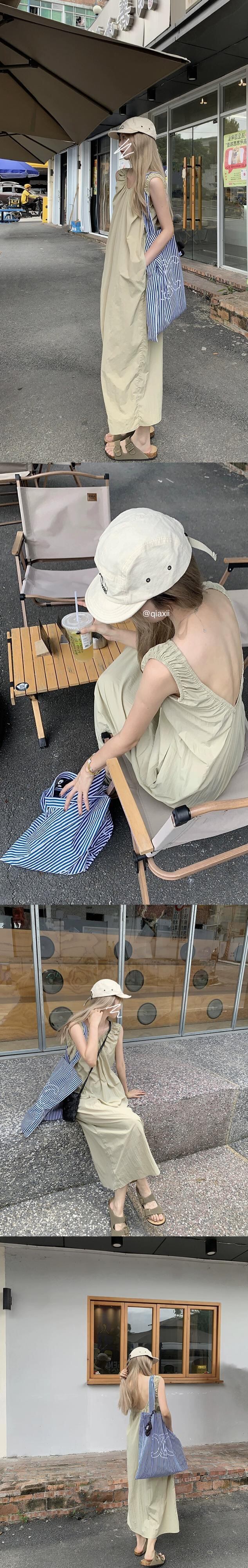 フレンチ V ネックノースリーブドレスの女性の夏 2023 新しいバックレスデザインルーズ膝丈スカート サマー 夏物 Vネック missk18190368866