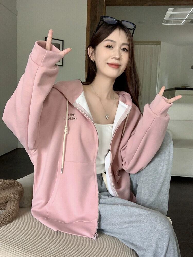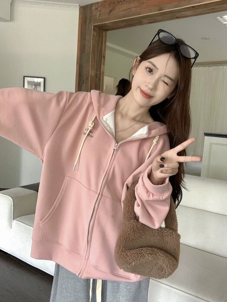 怠惰なスタイルの文字刺繍長袖トレーナー女性の秋バージョン 2023 新しい緩いミドル丈のフード付きジャケット ロング レッド オータム 秋物 missk36528319408