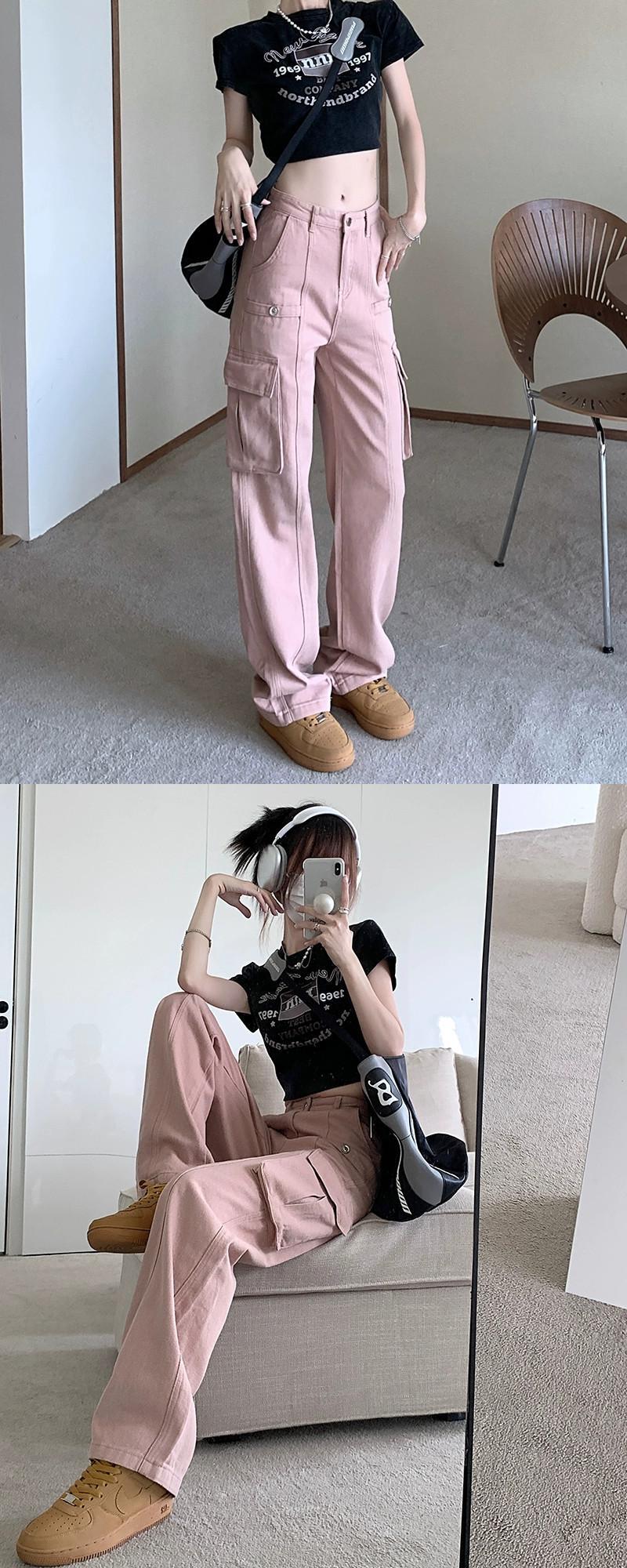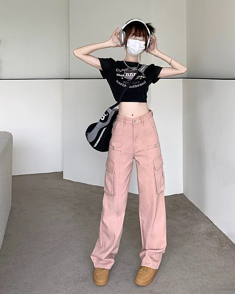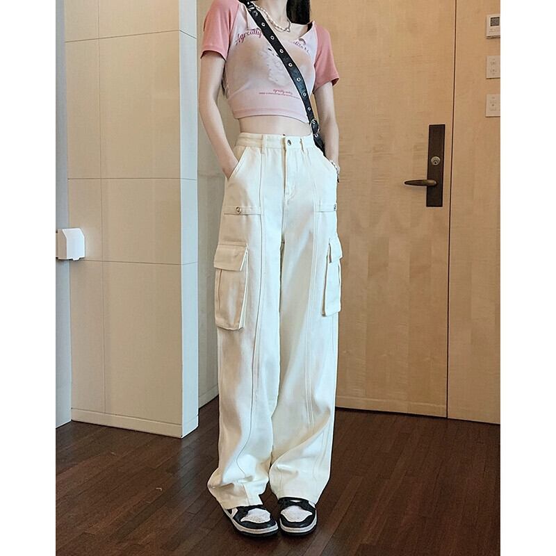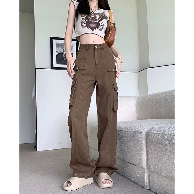 アメリカンオーバーオール女性 2023 秋の新しいハイウエストスリムデザインルーズフロアレングスジーンズストレートパンツ オータム 秋物 missk53674252868
