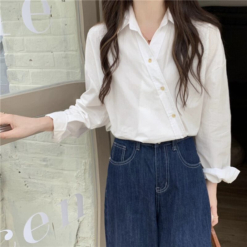 ポロカラー長袖シャツ女性のデザインニッチ夏 2023 新しい不規則なルーズシャツ BF スタイルトップ ロング サマー 夏物 missk84606856512