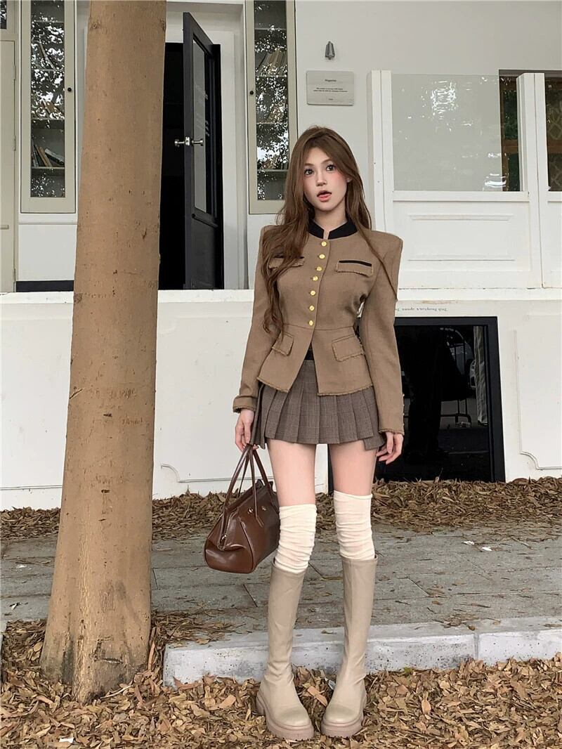 2023 秋の新ファッションスリムローエッジ長袖スーツジャケット + ハイウエストプリーツスカートレディース 2 点セット ロング オータム 秋物 missk8291086520