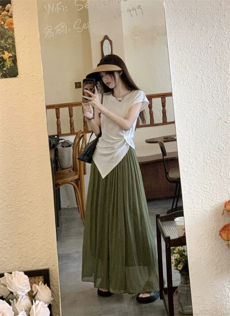 色:白い半袖,グリーンキュロット