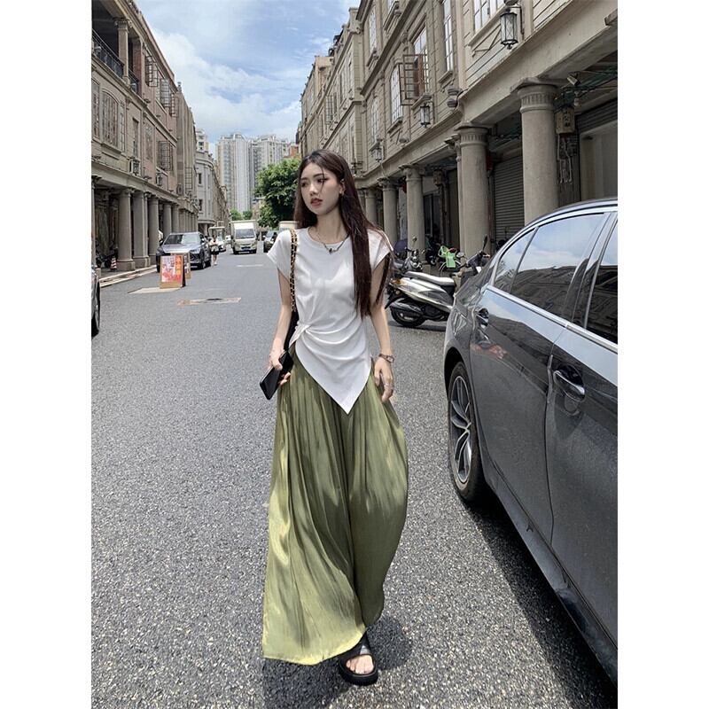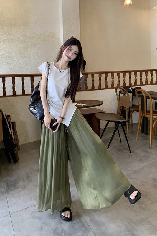 ドレーププリーツキュロット女性の夏 2023 新しいレトロフレンチハイウエストスリムデザインワイドレッグカジュアルパンツ サマー 夏物 missk61116986214
